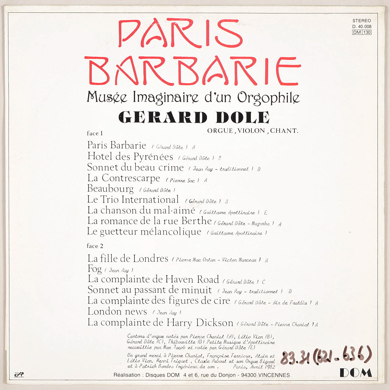 La pochette présente une photographie centrale de l'artiste avec un orgue de barbarie. Elle est entourée de cartes postales montrant différents monuments, comme le Sacré-Coeur, la rothonde des Buttes-Chaumont, le Moulin de la Galette à Paris ou encore le Westminster Bridge de Londres.