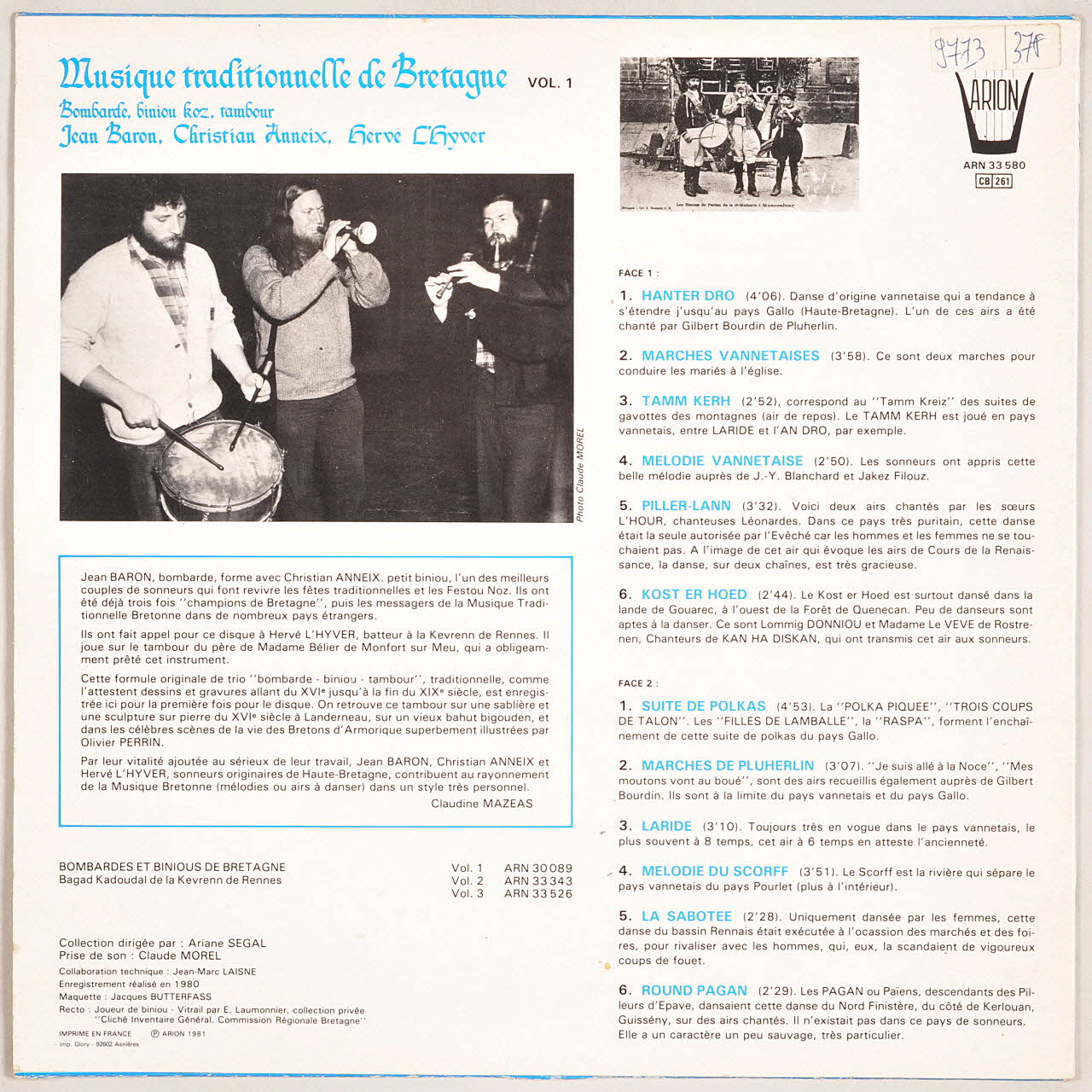 disque 33 tours, Mélodie vannetaise, Laridé, Hanter dro, Piller-lann, Suite de polkas, Musique traditionnelle de Bretagne, Mélodie du Scorff, Round pagan, Kost er hoed, Marches vannetaises, La sabotée, Marches de Pluherlin, Tamm Kerh