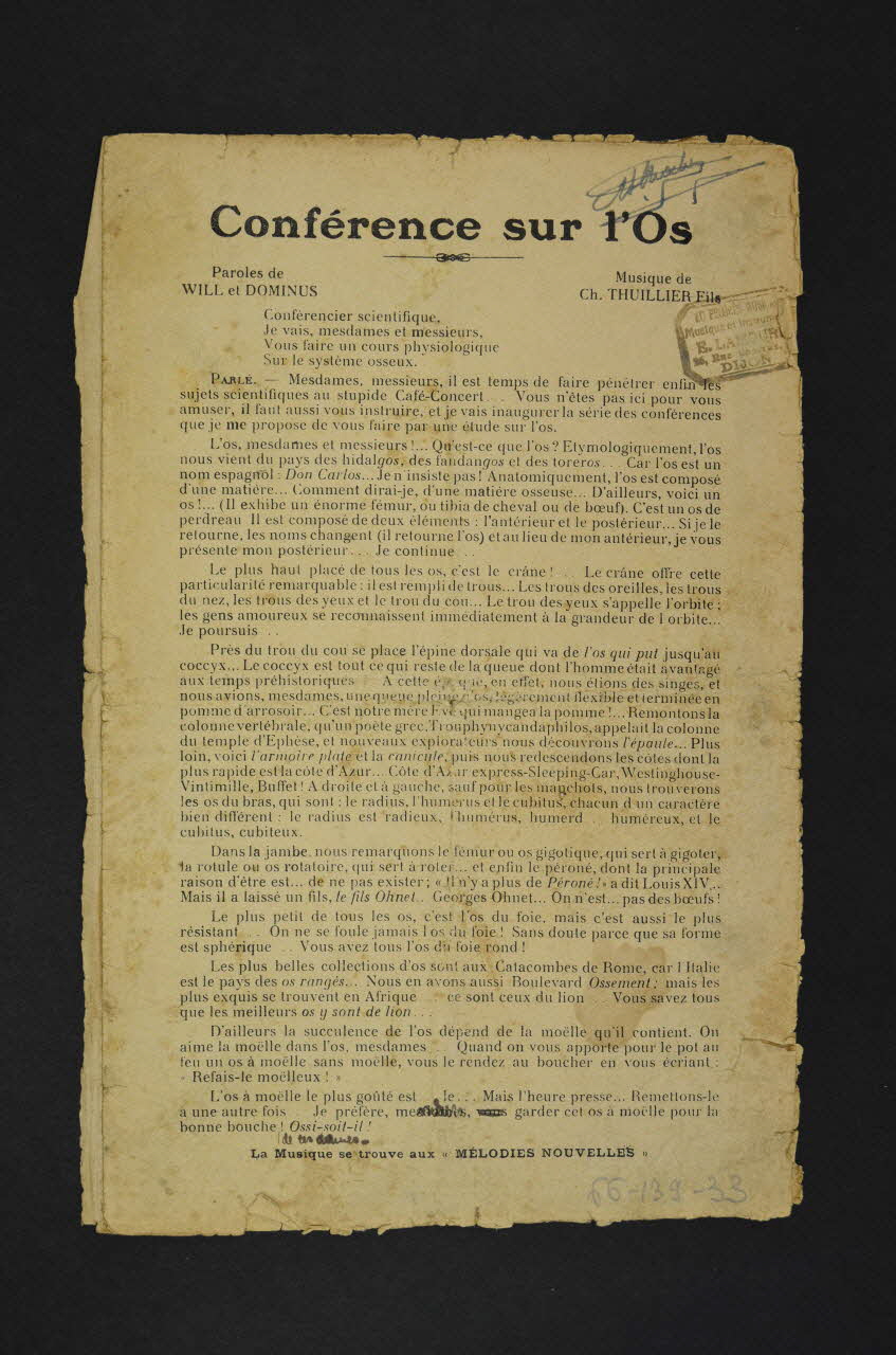 chanson, petit format, Conférence sur l'os