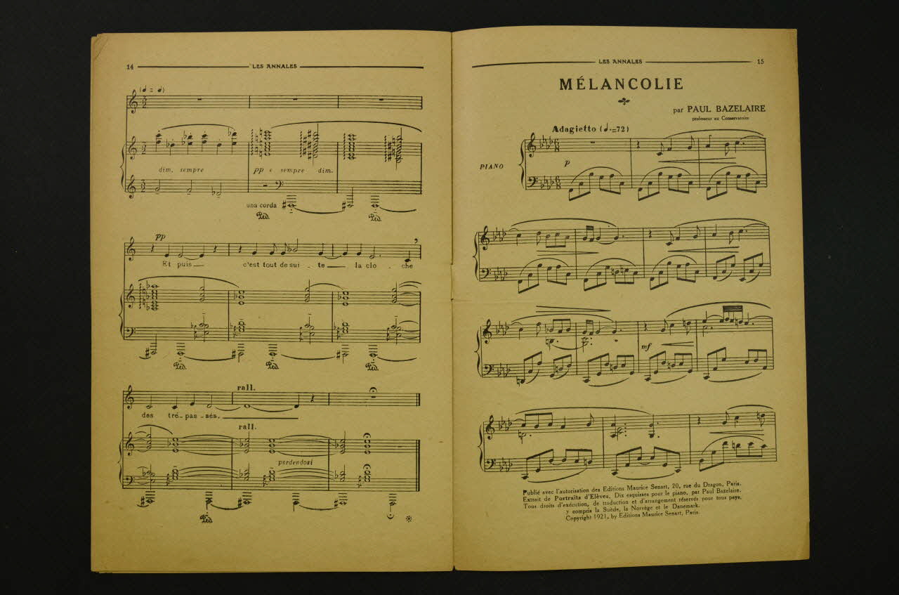 partition de musique, chanson, livret, La vie, La musique des annales, Mélancolie, Le temple de l'amour