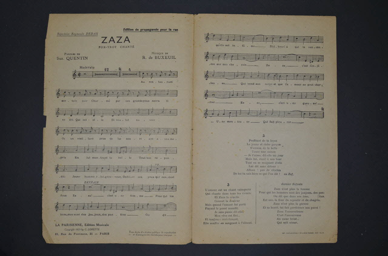 chanson, partition de musique, petit format, Zaza