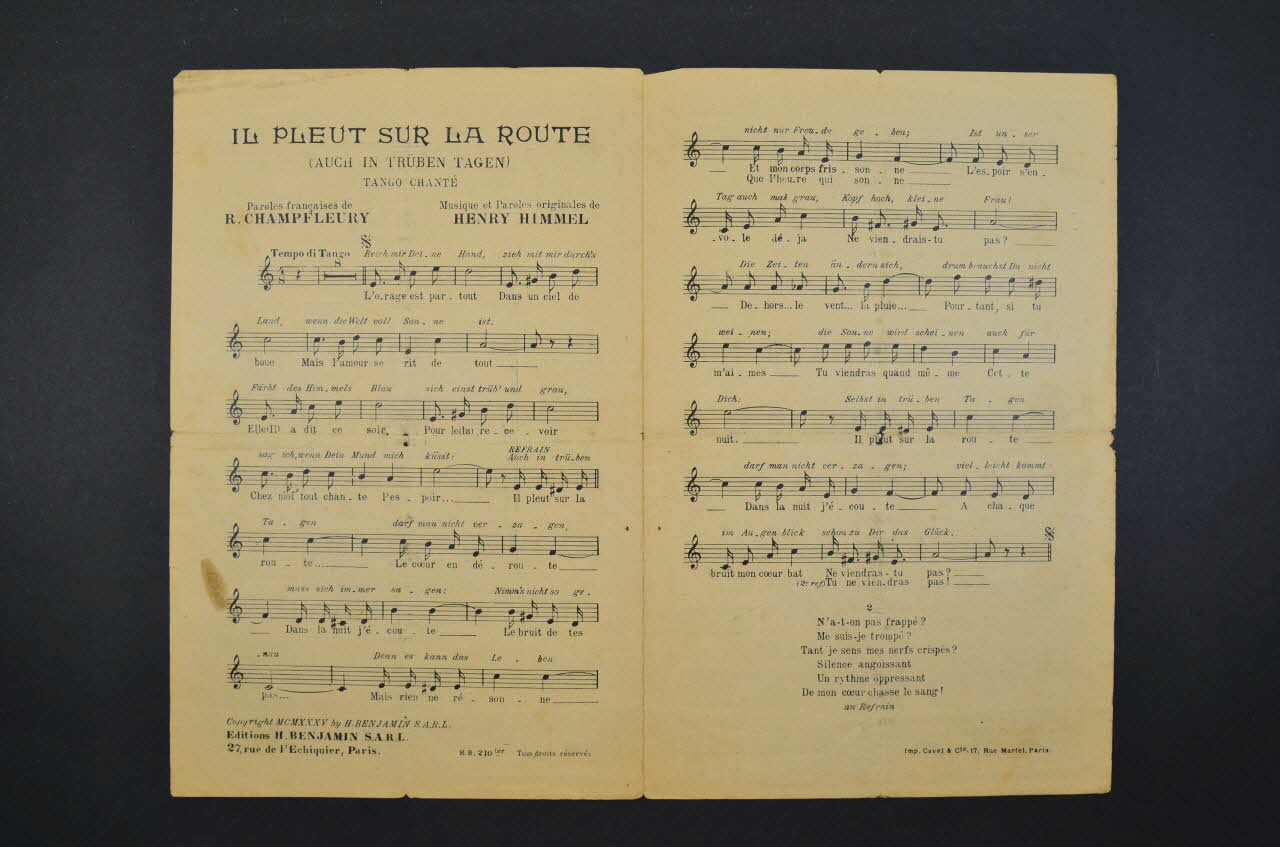 De : Lieu : Paris 10èmeParoles françaises / Paroles allemandes / 27 rue de l'échiquier