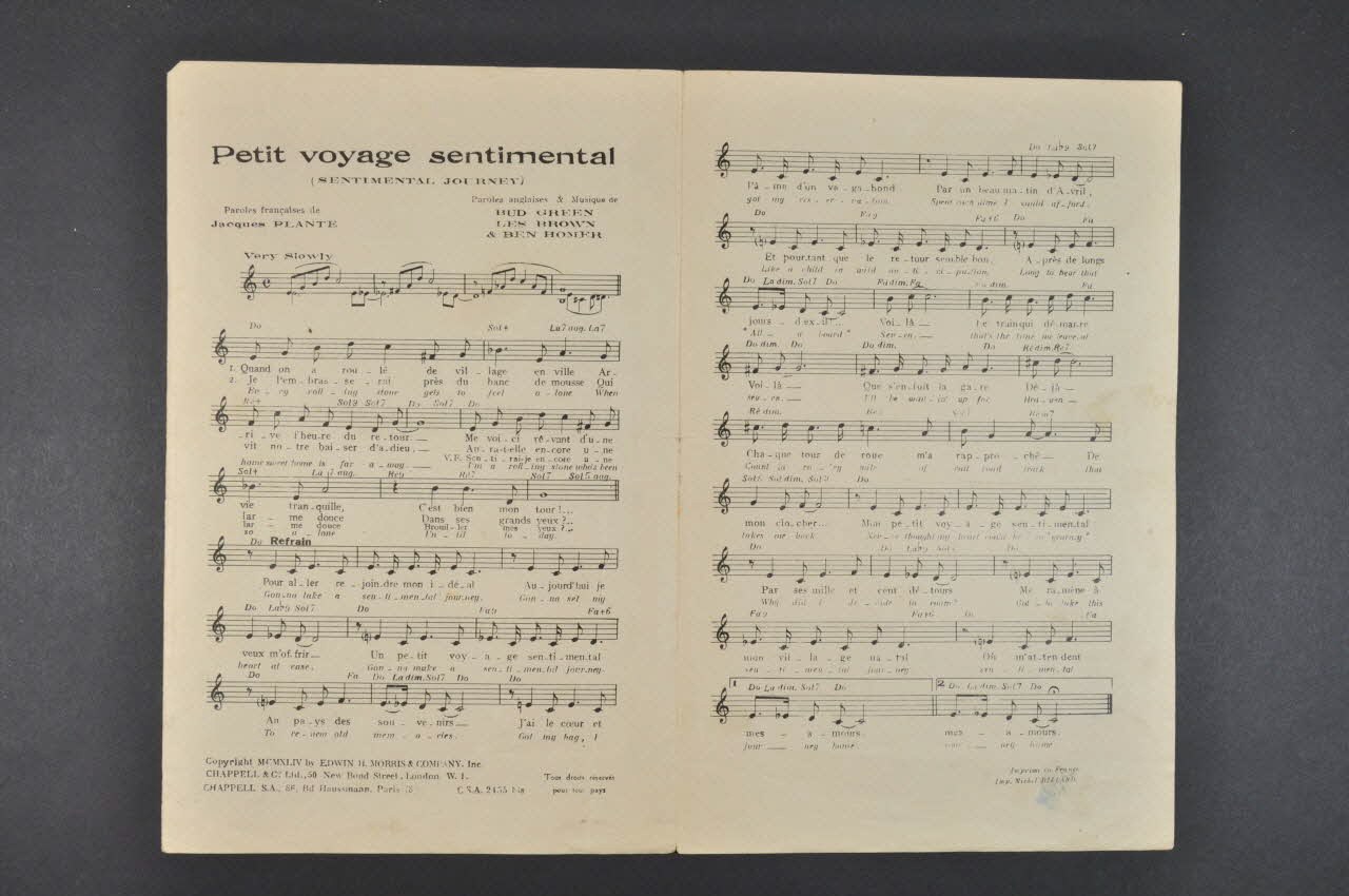 chanson, partition de musique, petit format, Sentimental journey