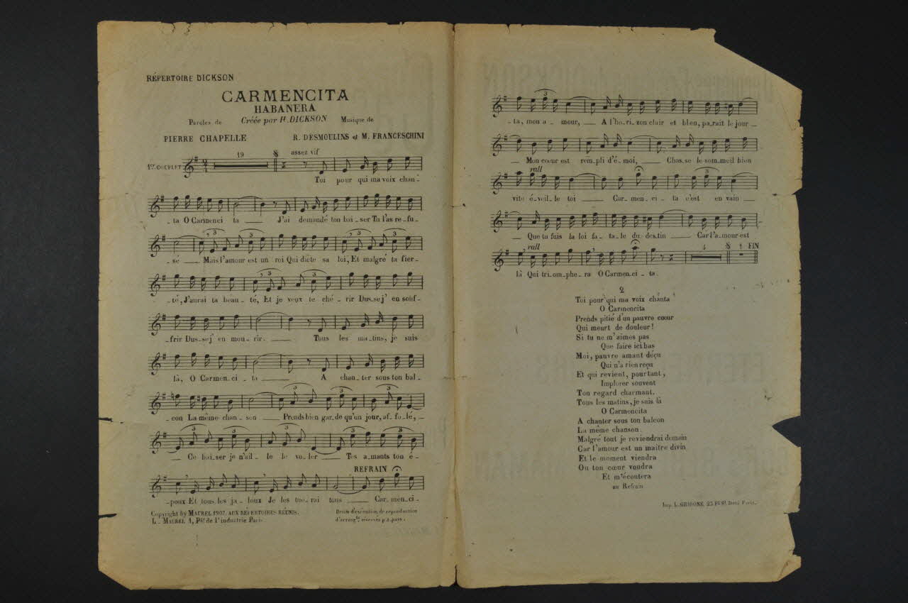 chanson, partition de musique, petit format, Carmencita, Habanera