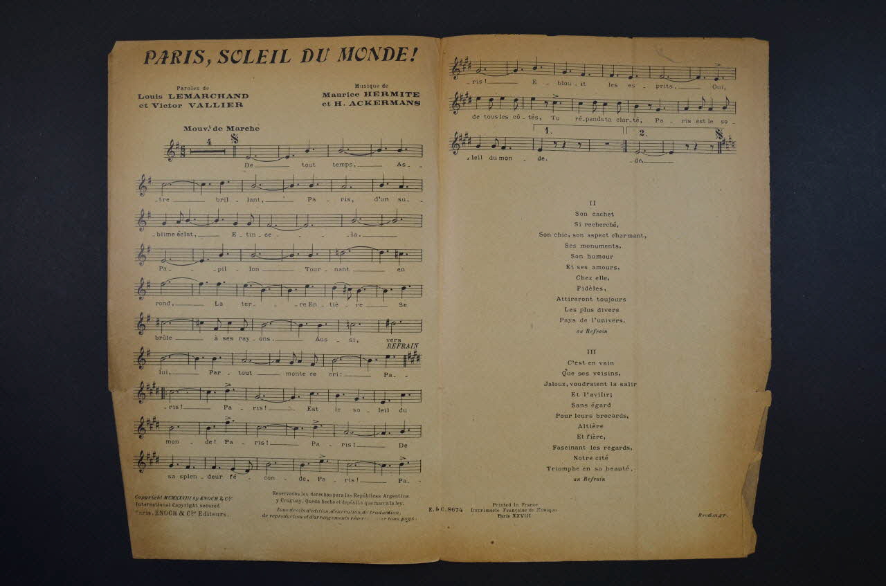 chanson, partition de musique, petit format, Paris soleil du monde