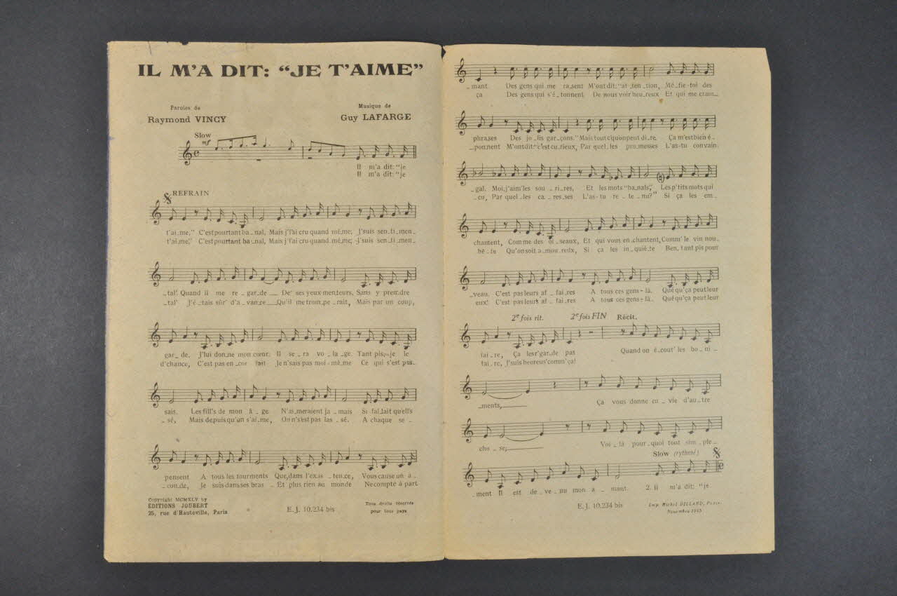 chanson, petit format, partition de musique, Il m'a dit je t'aime
