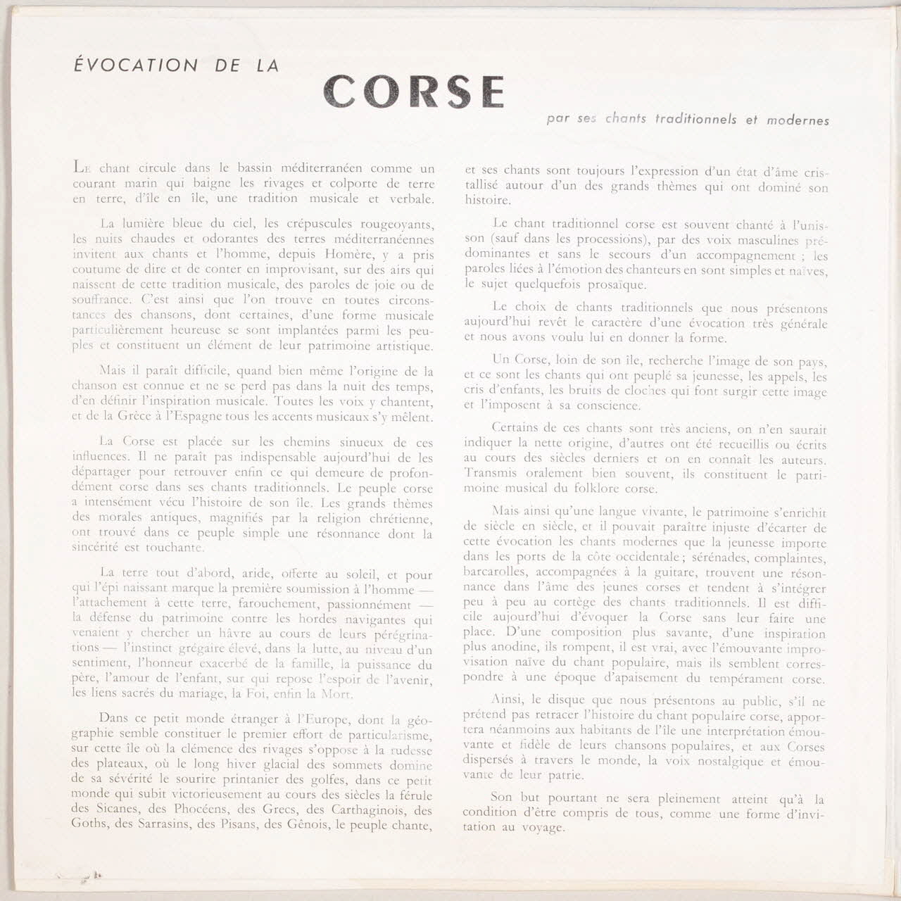 Lieu : Corse, FranceDate : 1956Collecteur : Félix QuiliciAcquisition