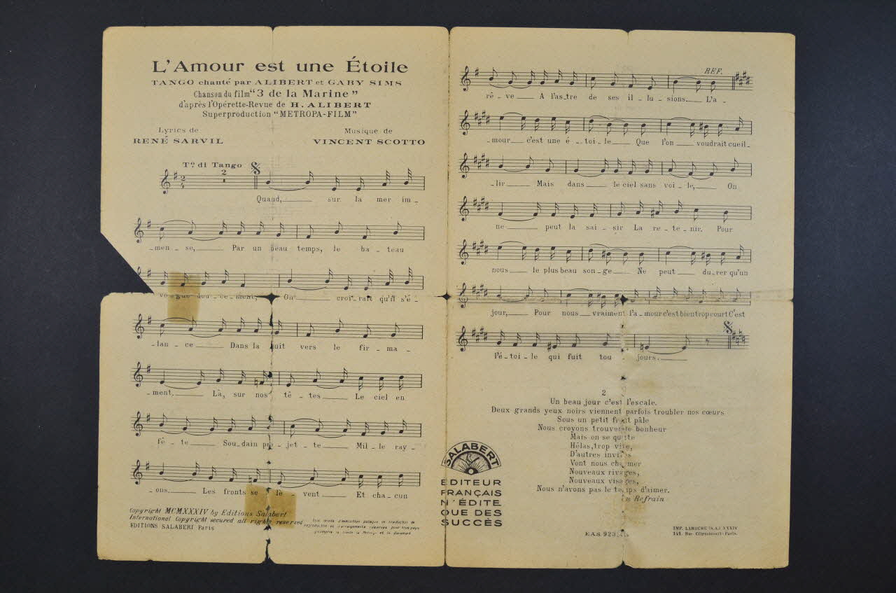 chanson, partition de musique, petit format, L'Amour est une étoile, Trois de la marine