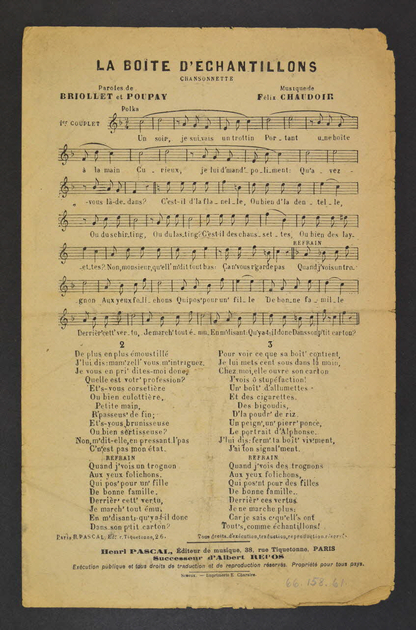 chanson, petit format, partition de musique, La boîte d'échantillons