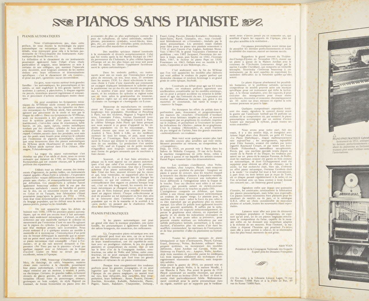 La pochette présente une photographie couleur d'un piano mécanique sur un fond beige.