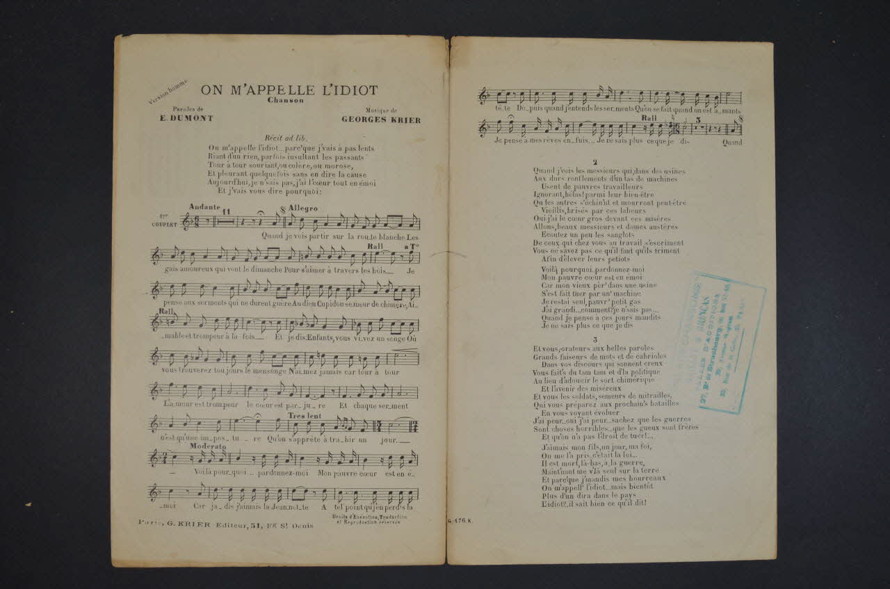 chanson, partition de musique, petit format, On m'appelle l'idiot