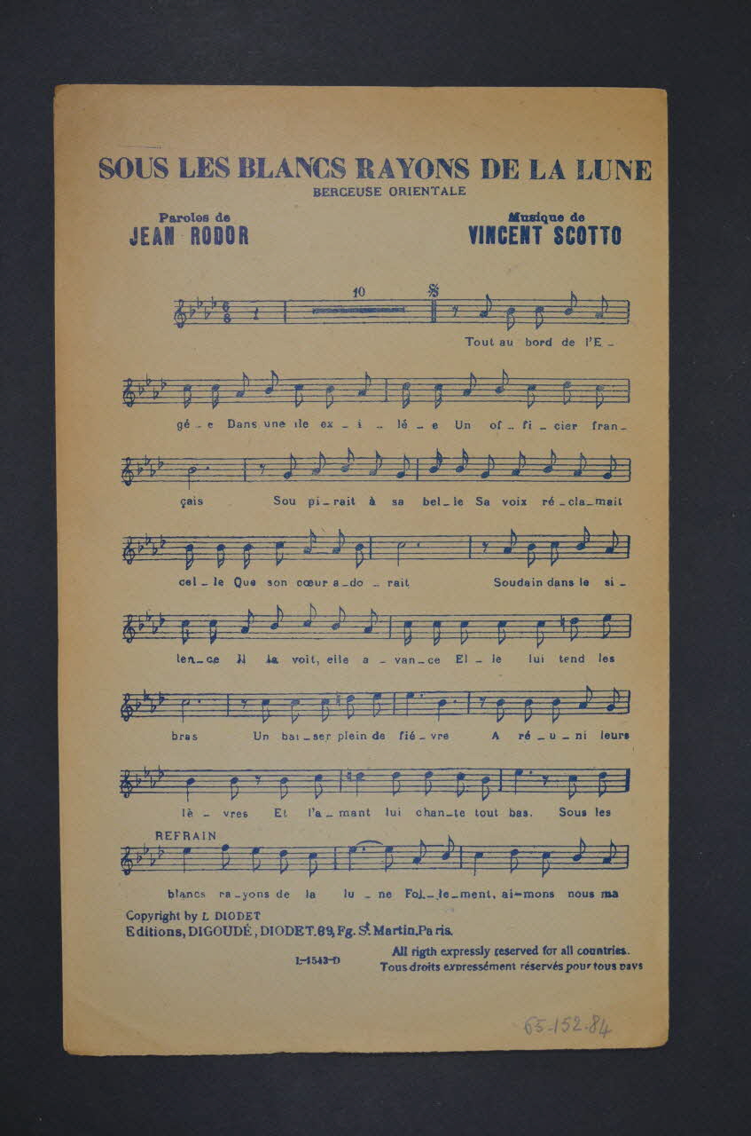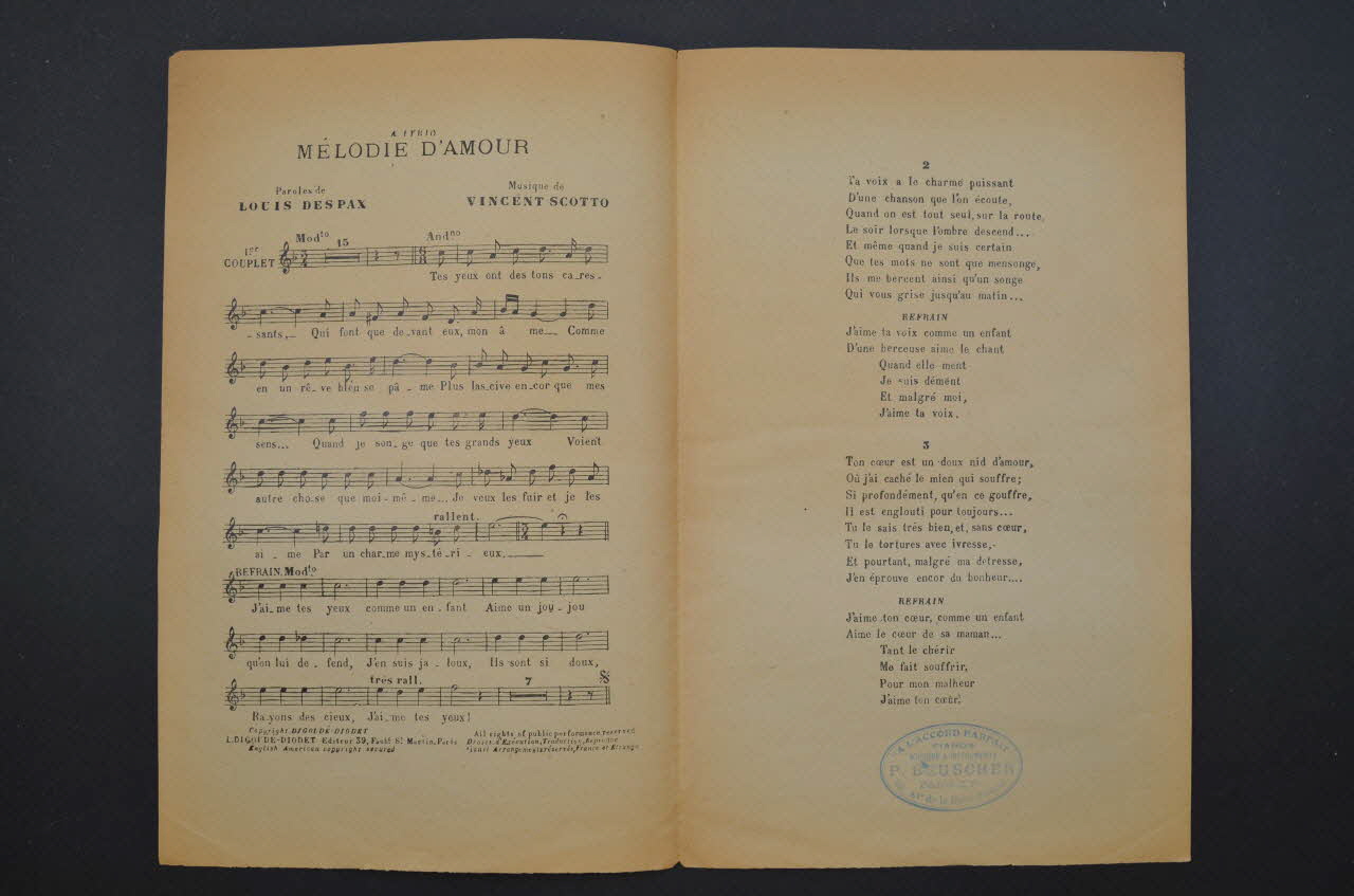 De : Lieu : France - Île-de-France - ParisMélodie d'amour / Mélodie d'amour // Sous les blancs rayons de la lune / Sous les blancs rayons de la lune / 39 fbg St-Martin