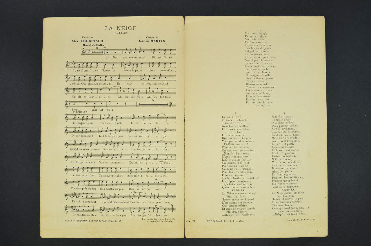 chanson, partition de musique, petit format, La neige