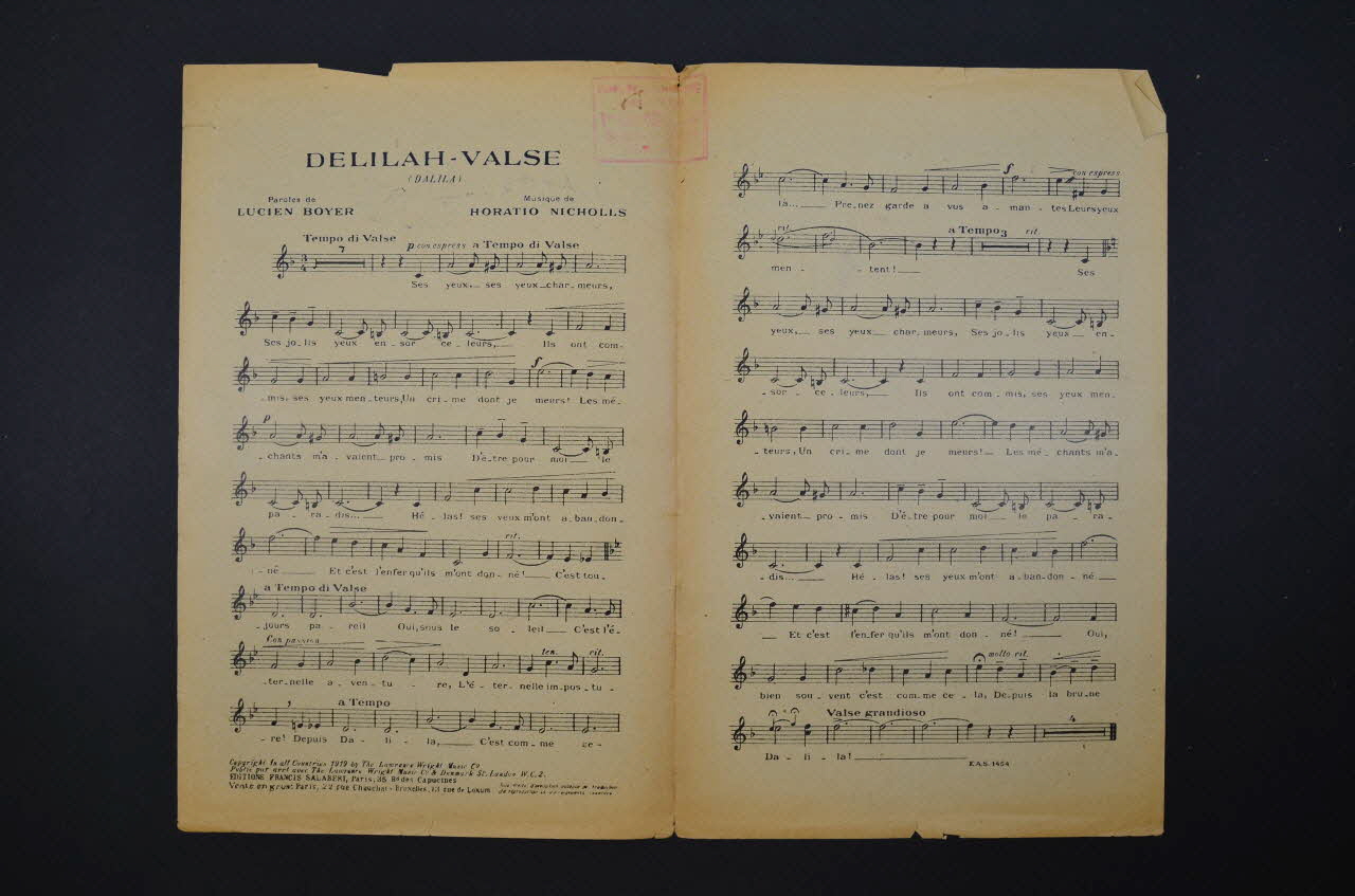 chanson, partition de musique, petit format, Delilah-Valse