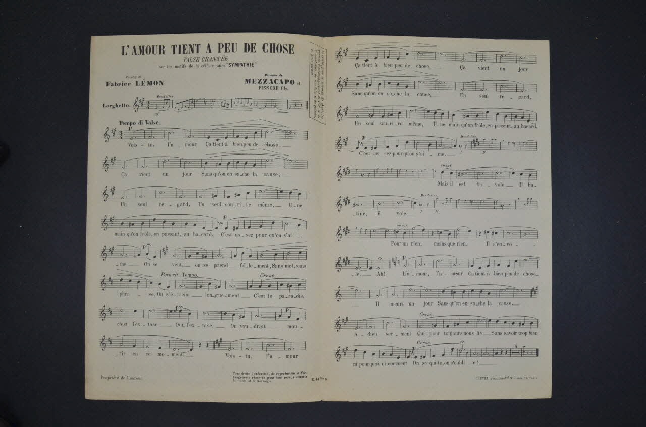 chanson, partition de musique, petit format, L'amour tient à peu de chose