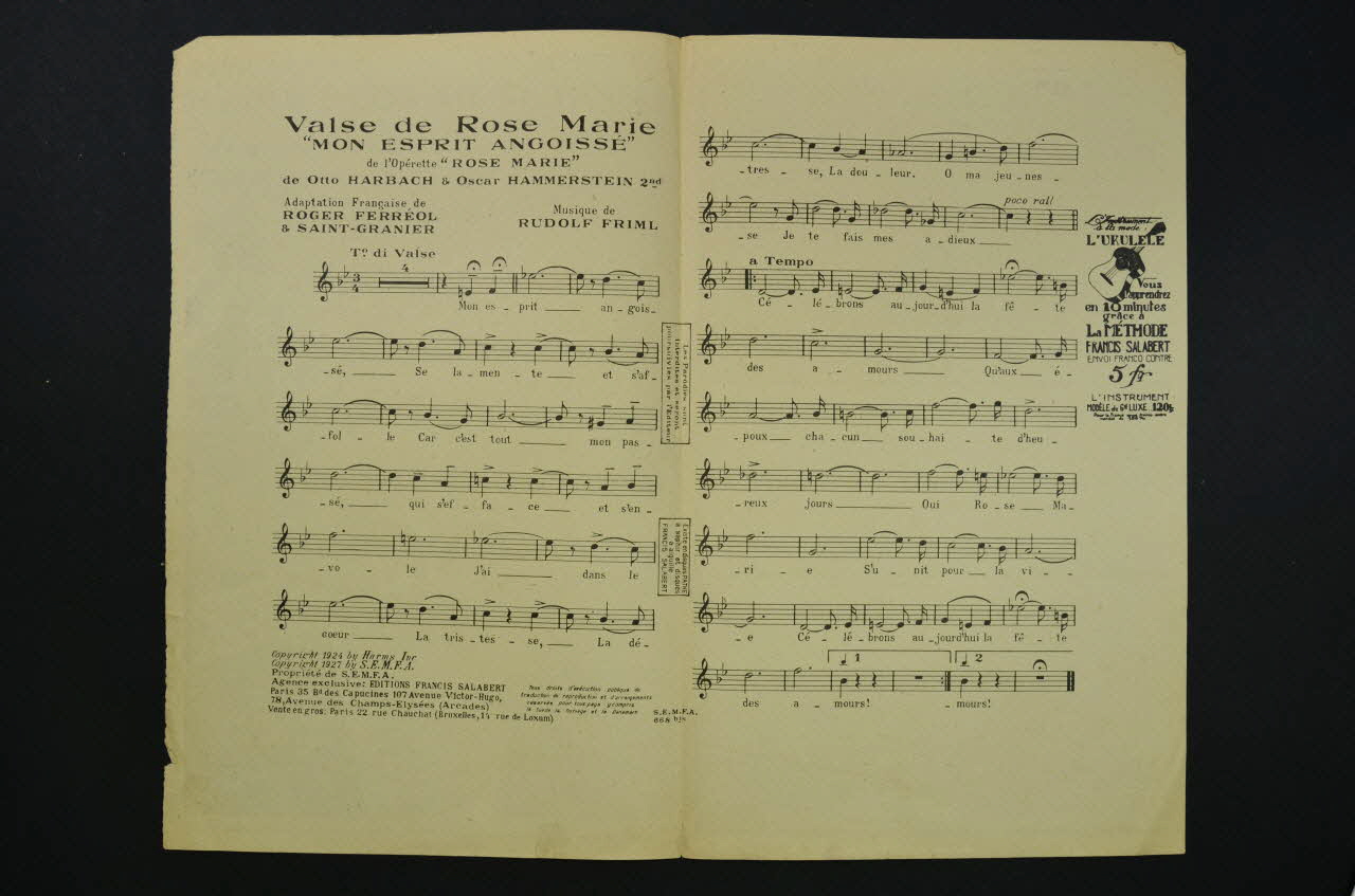 chanson, partition de musique, petit format, Mon esprit angoissé, Rose-Marie