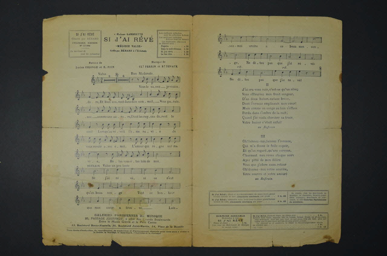 chanson, petit format, partition de musique, Si j'ai rêvé