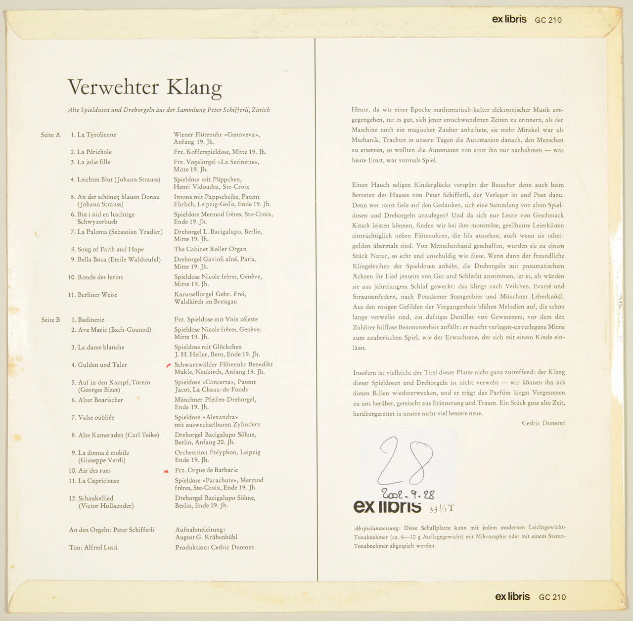 disque 33 tours, Bella Boca, Alte Kameraden Marsch, An der schönen blauen Donau, Verwehter Klang, Gulden und Taler, La donna è mobile, Auf in den Kampf torero, La Dame blanche, Berliner Weise, Air des rues, Leichtes blut, Schaukellied, La tyrolienne, La Paloma, Ronde des lutins, Badinerie, Ave Maria, Valse oubliée, Bin i nid en luschtige Schwyzerbueb, La périchole, La Capricieuse, Song of Faith and Hope, Alter Boarischer, La jolie fille