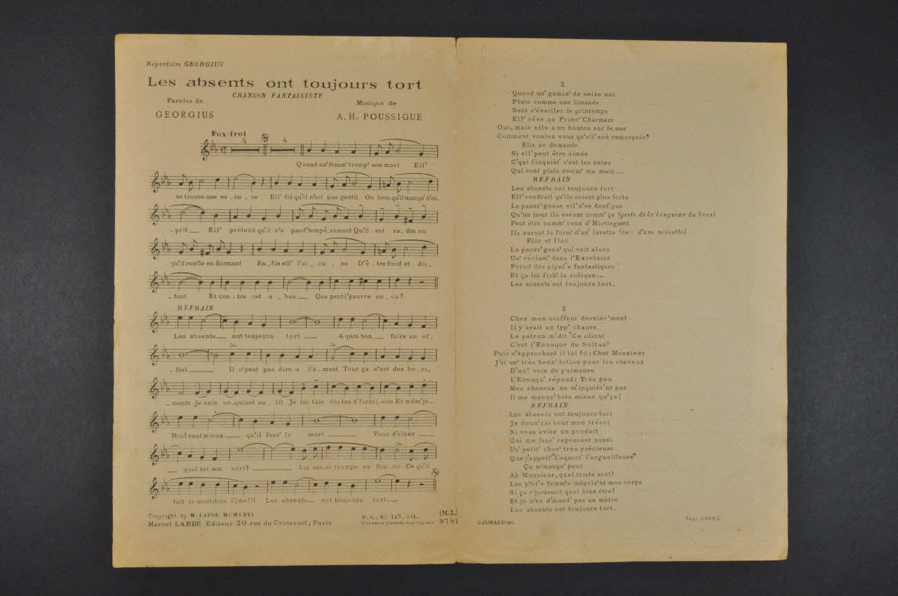 chanson, partition de musique, petit format, Les absents ont toujours tort
