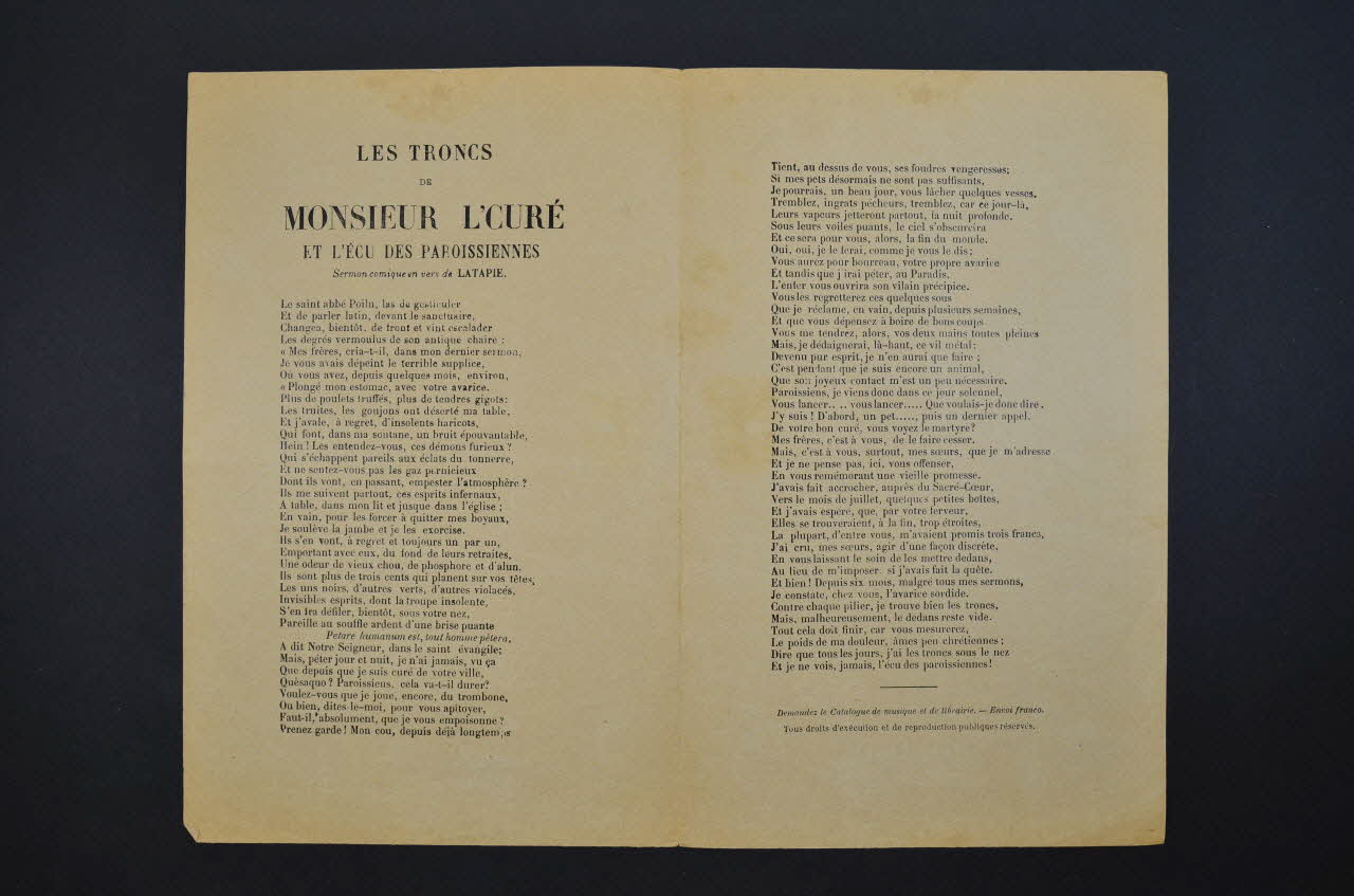 chanson, petit format, Les troncs de monsieur le curé et l'écu des paroissiennes