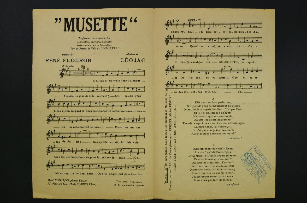 chanson, partition de musique, petit format, Musette