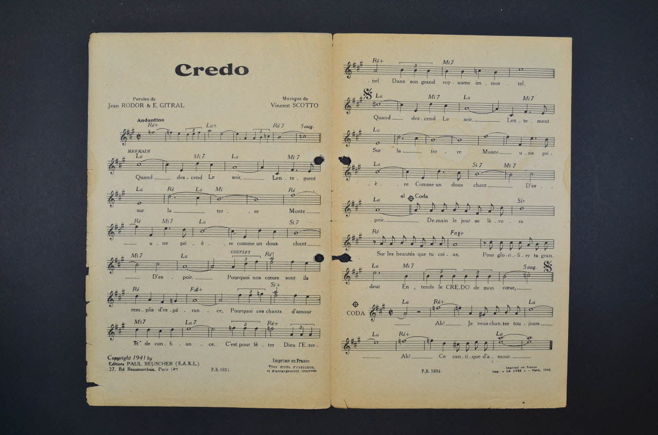 Au dos, le portrait photographique de Vincent Scotto et liste d'autres partitions publiées par l'éditeur.