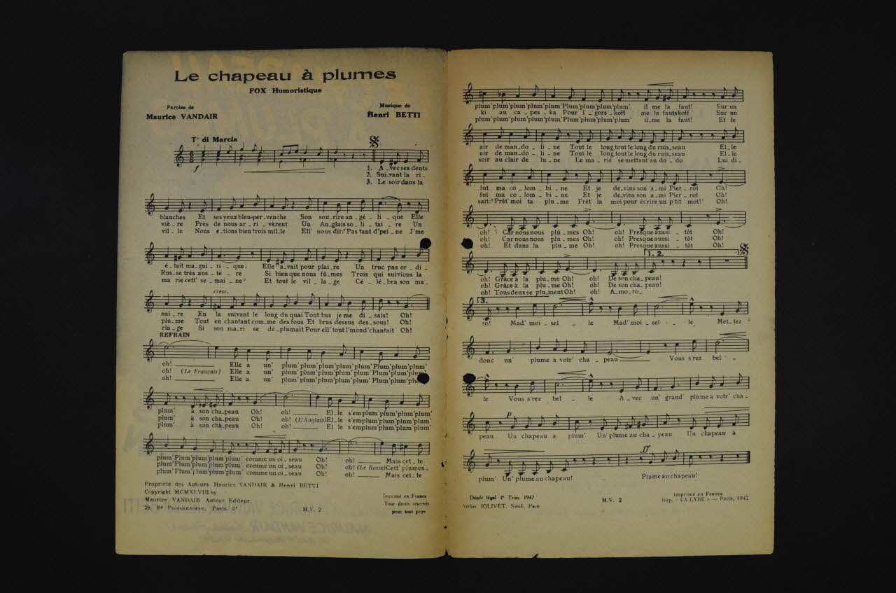 chanson, petit format, partition de musique, Le chapeau à plumes