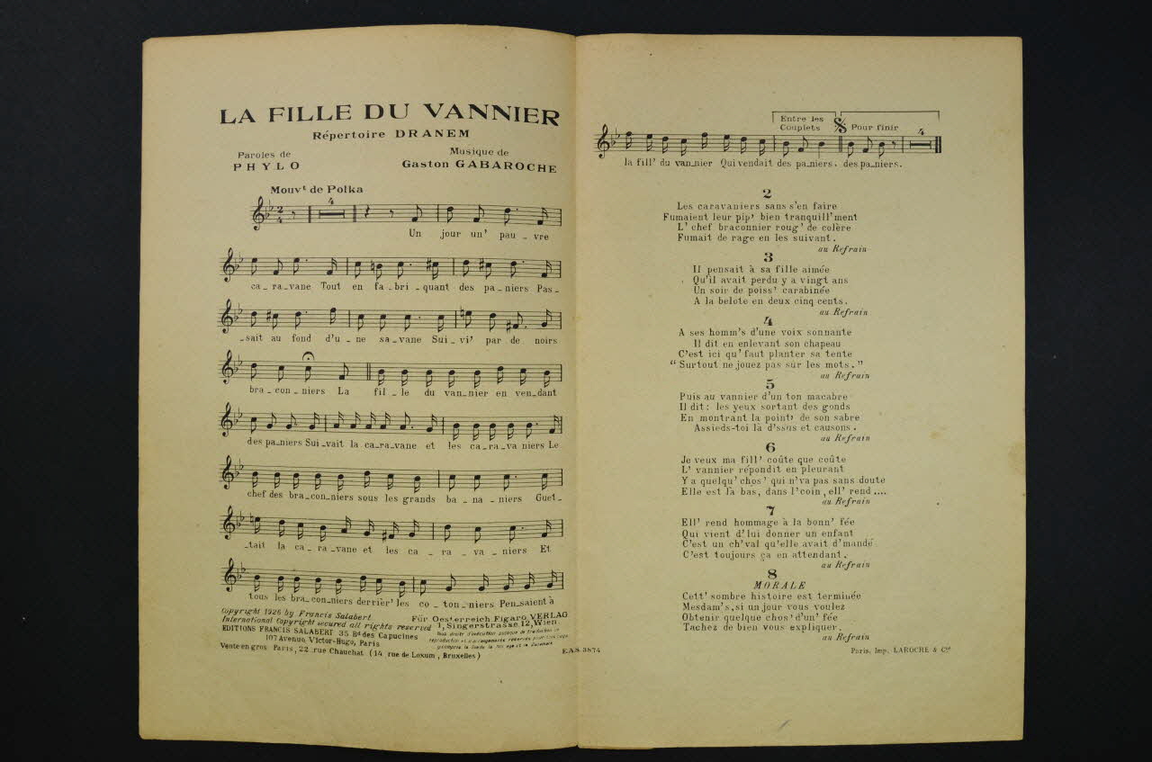 chanson, petit format, partition de musique, La fille du vannier