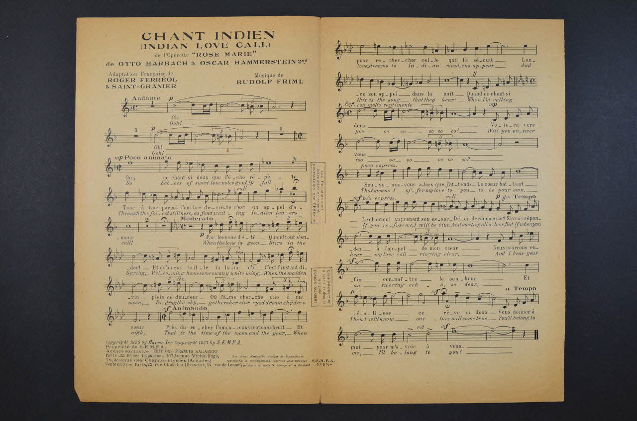 chanson, partition de musique, petit format, Chant indien, Rose-Marie