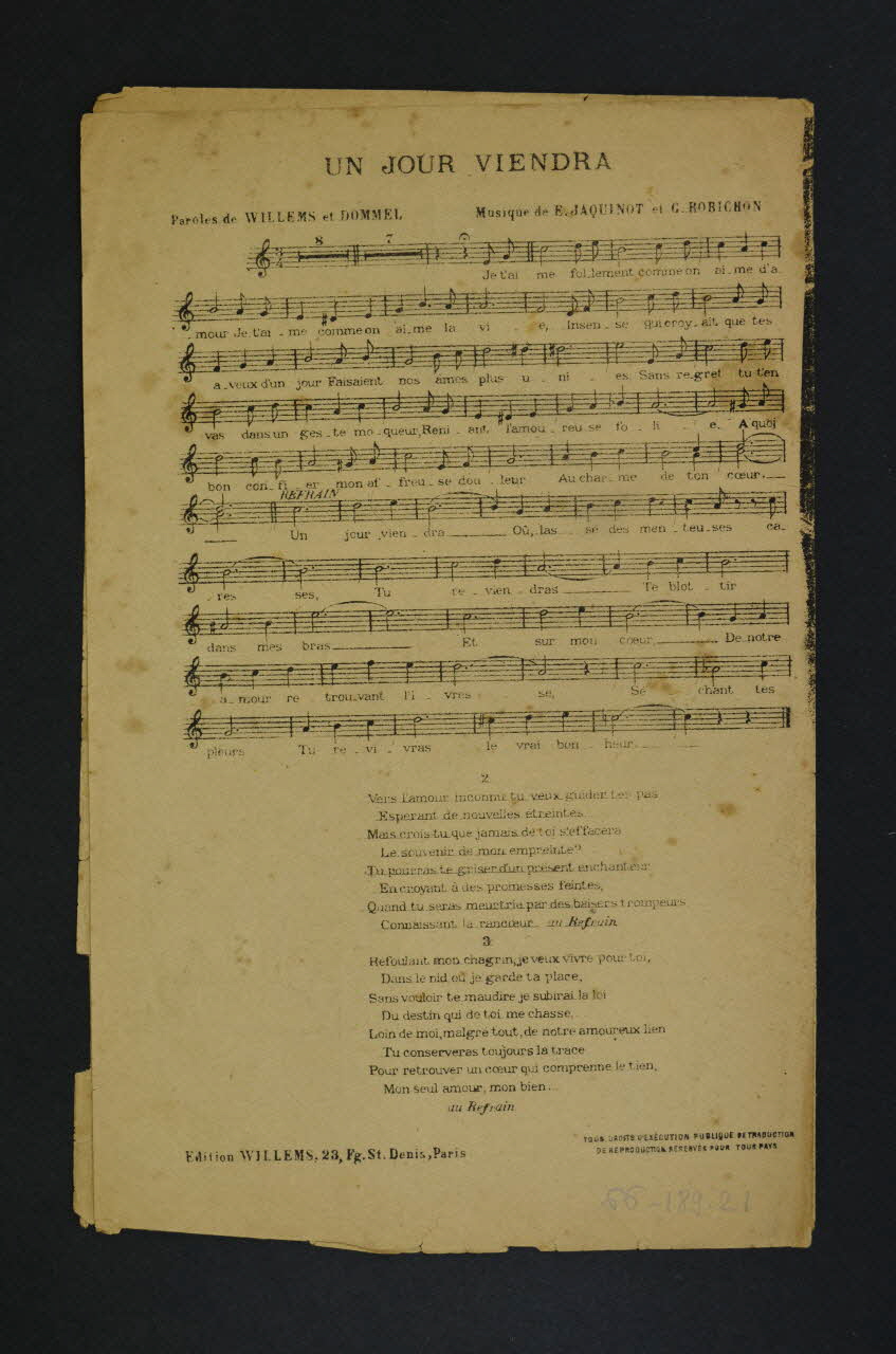 chanson, partition de musique, petit format, Un jour viendra