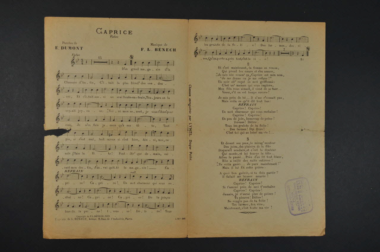 chanson, partition de musique, petit format, Caprice