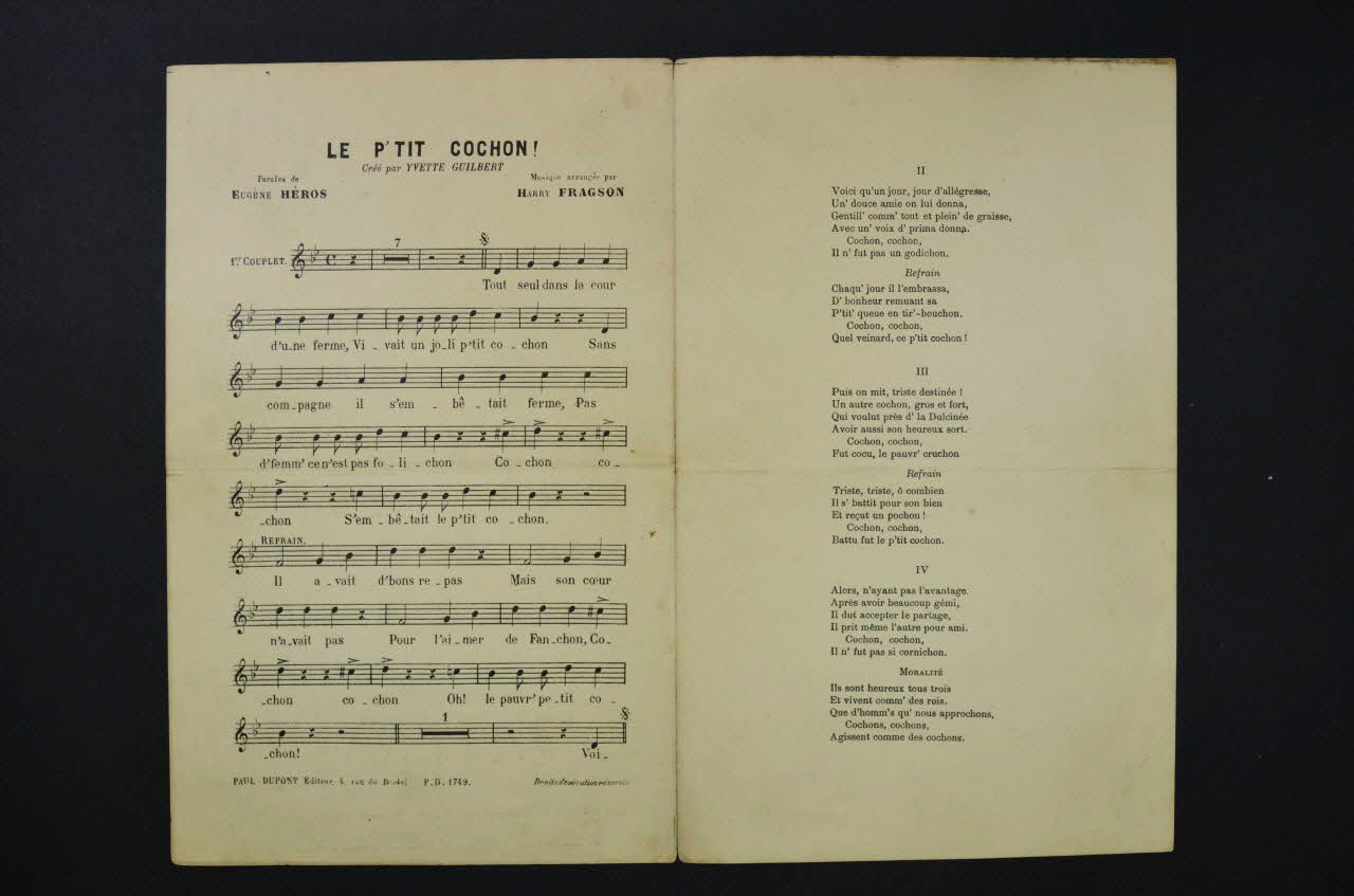chanson, petit format, partition de musique, P'tit cochon !