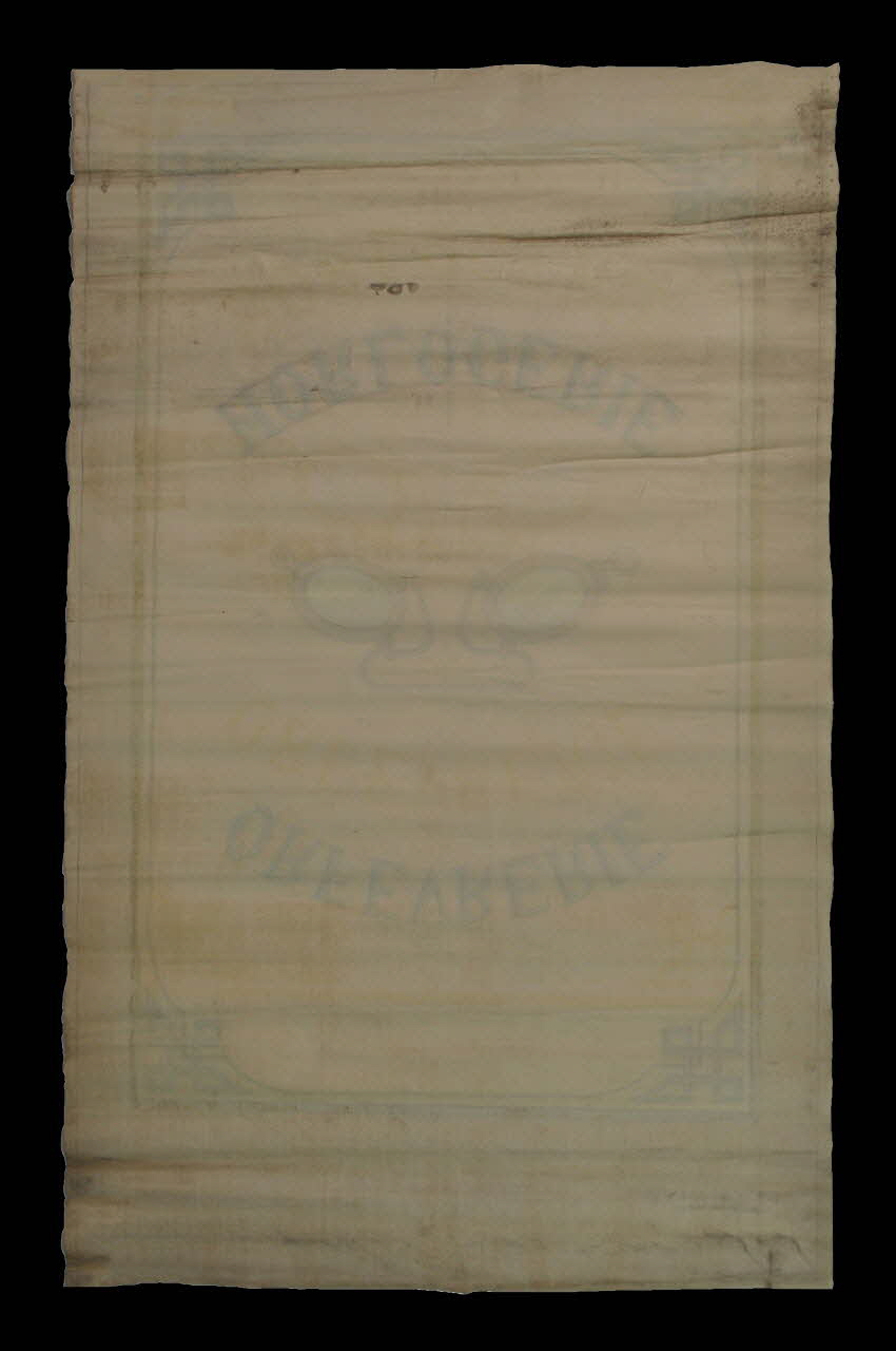 Ce décor de boutique est constitué d'une toile tissée et peinte de forme rectangulaire.