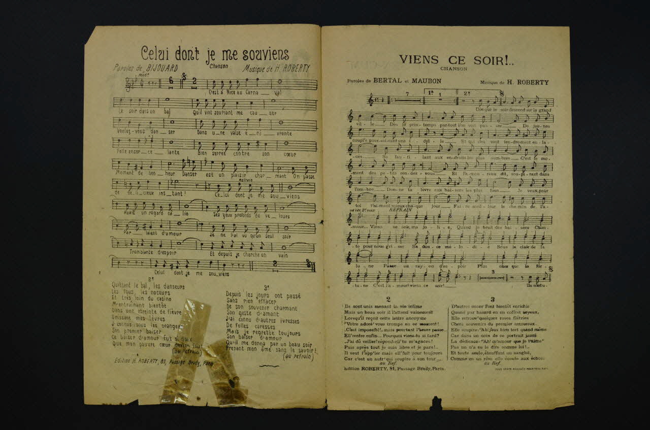 chanson, partition de musique, petit format, Viens ce soir, Paris-Concert, Un bout de sen-sen-gum, Celui dont je me souviens