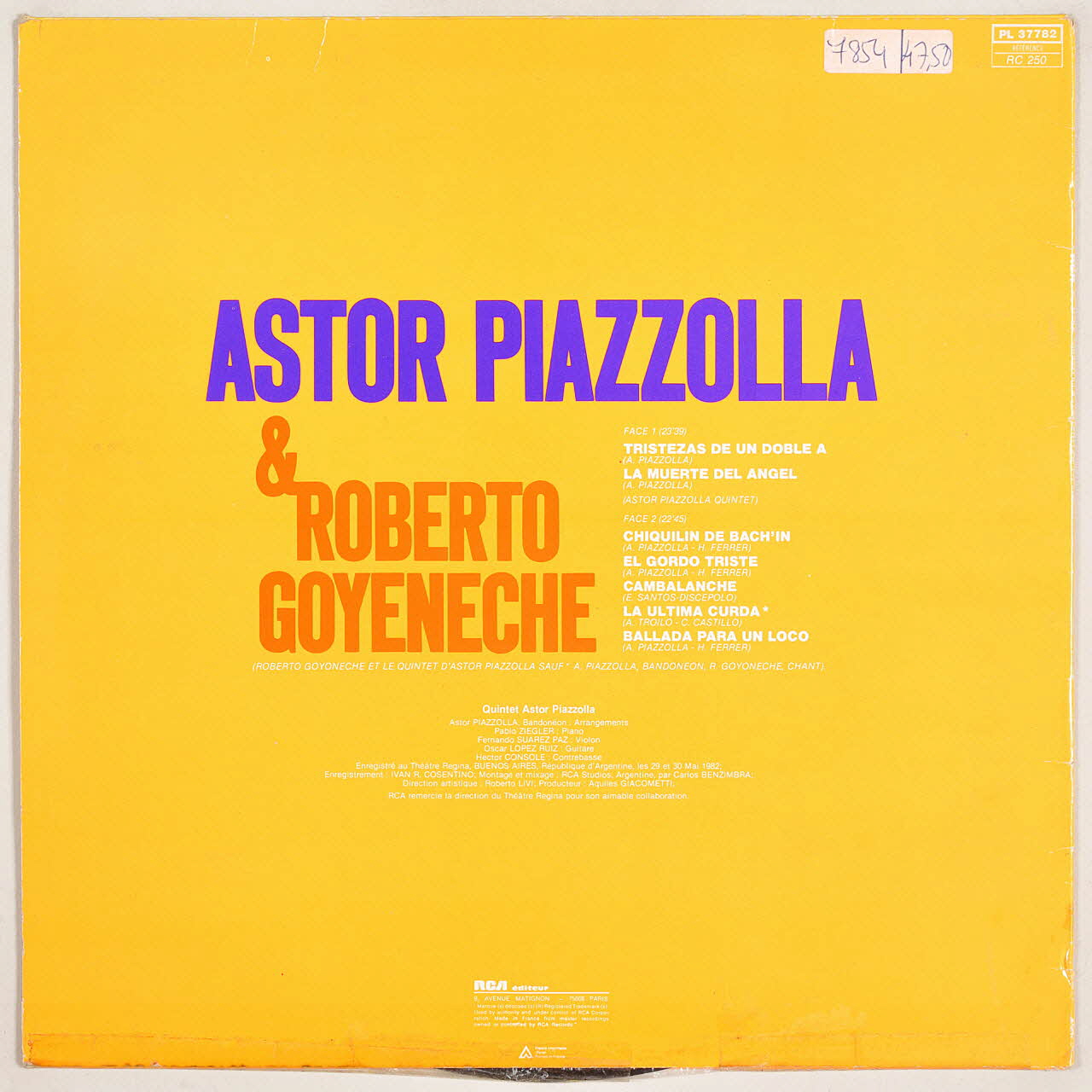 disque 33 tours, La ultima curda, El gordo triste, La muerte del angel, Tristezas de un doble A, Cambalanche, Ballada para un loco, Astor Piazzolla & Roberto Goyeneche, Chiquilin de bachin