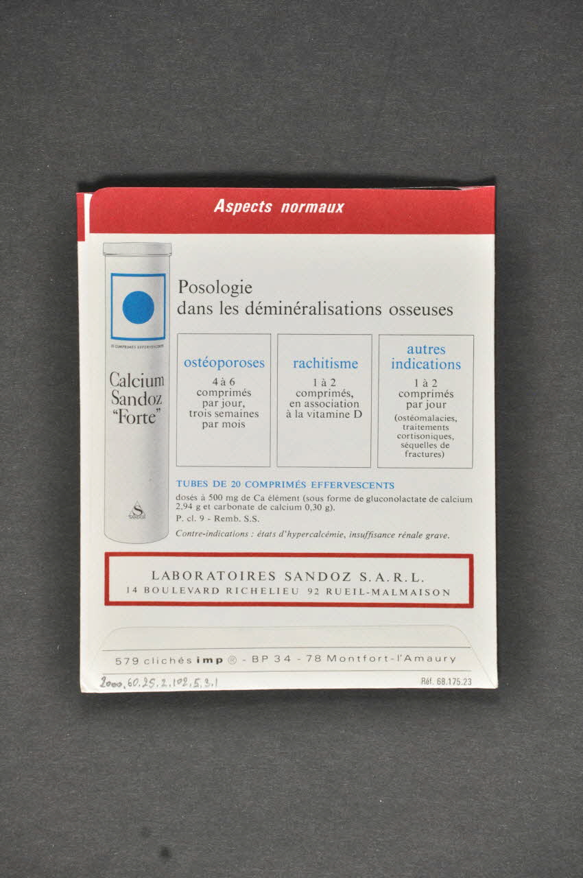 LABORATOIRES SANDOZ S.A.R.L. // 14 BOULEVARD RICHELIEU 92 RUEIL-MALMAISON (Adresse de laboratoire.), verso(Adresse de l'expéditeur. // 579 clichés Imp R - BP 34 - 78 Montfort-l'Amaury), versoLégende, imprimé