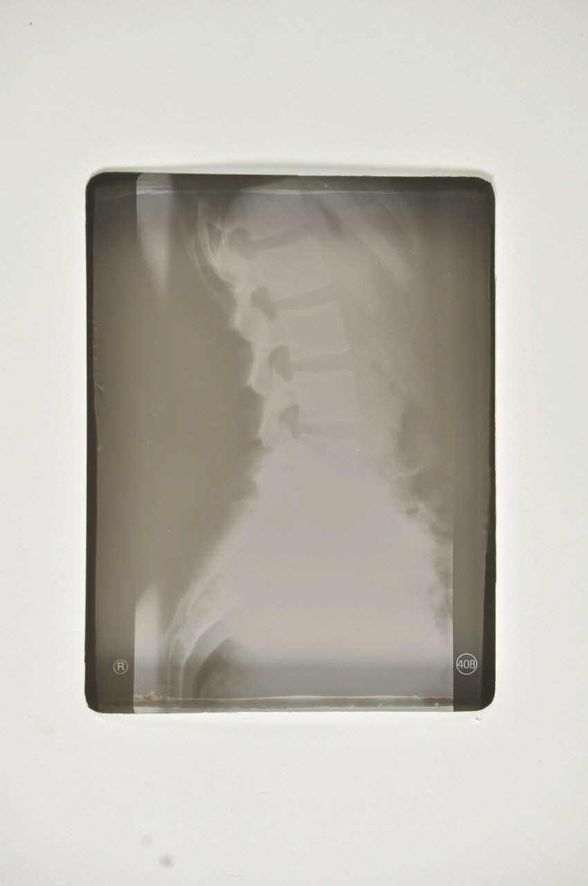 .2 : Une radiographie rectangulaire d'un rachis est contenue dans la pochette.Inscriptions