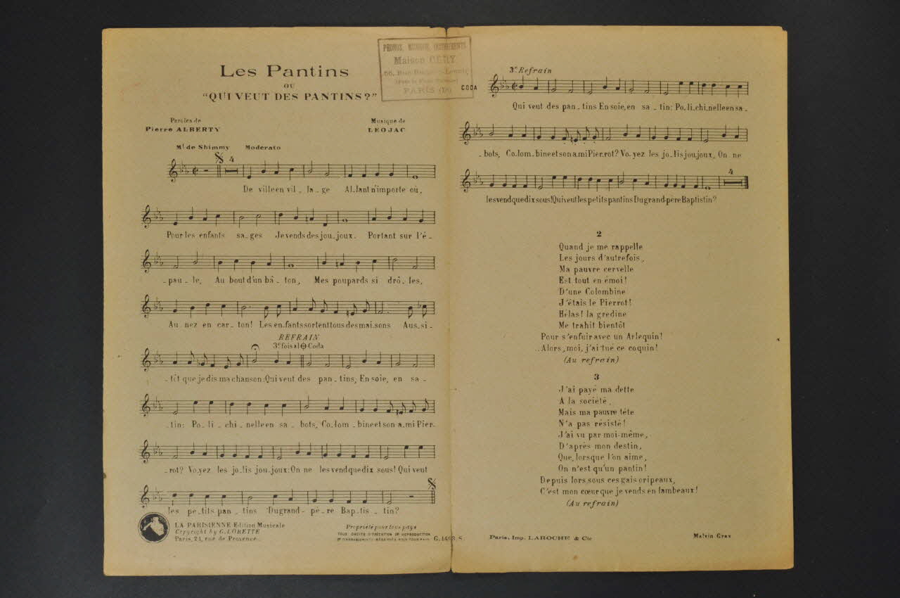 chanson, partition de musique, petit format, Les pantins