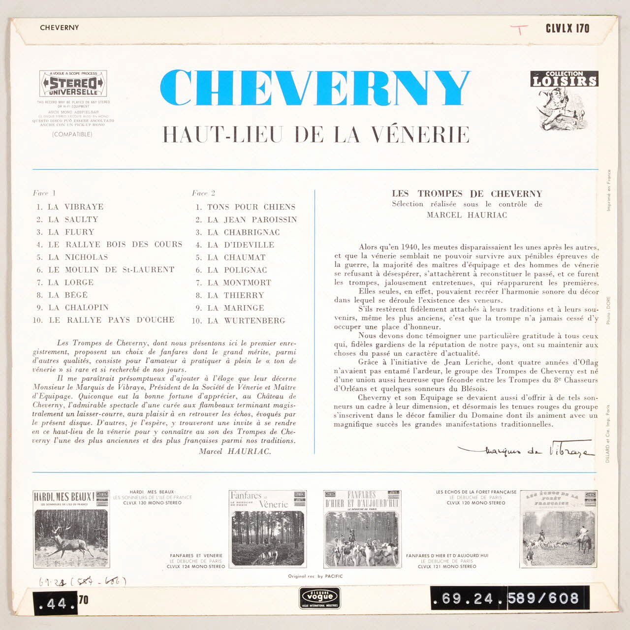 disque 33 tours, Cheverny haut-lieu de la vénerie