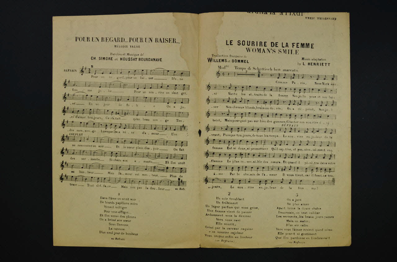 partition de musique, chanson, petit format, Le sourire de la femme, Paris-Concert, Quand descendra la nuit, Pour un regard...pour un baiser...