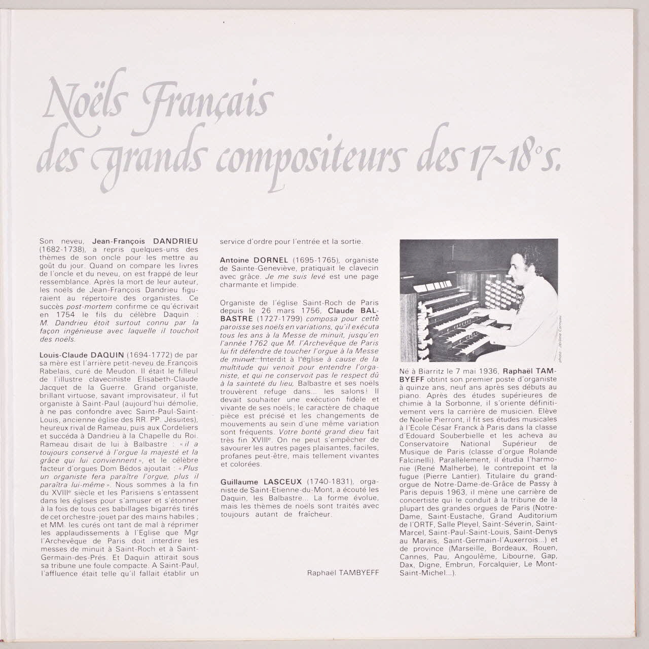 disque 33 tours, Noëls français des grands compositeurs des 17è et 18è siècles