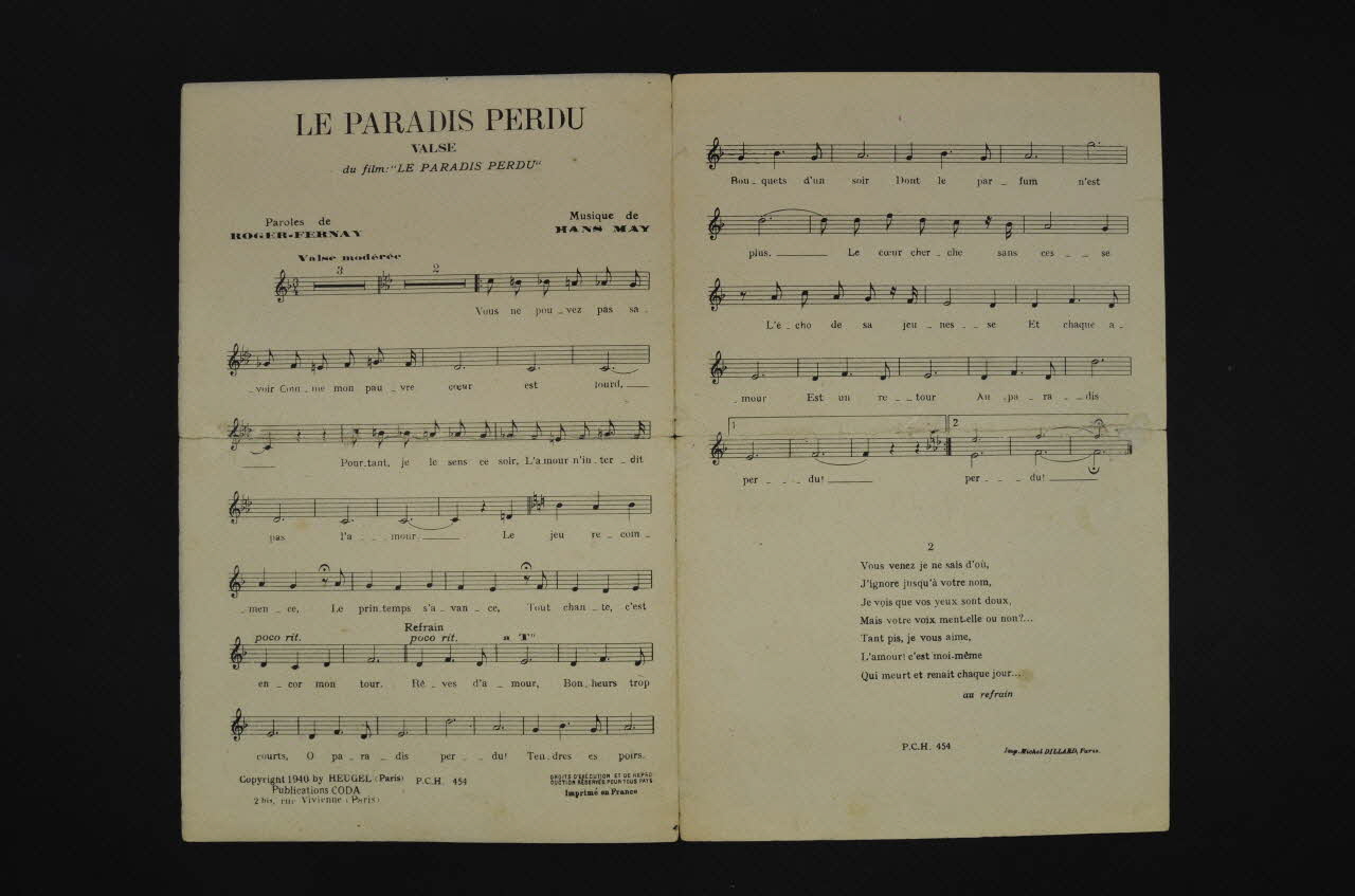 chanson, partition de musique, petit format, Le Paradis Perdu