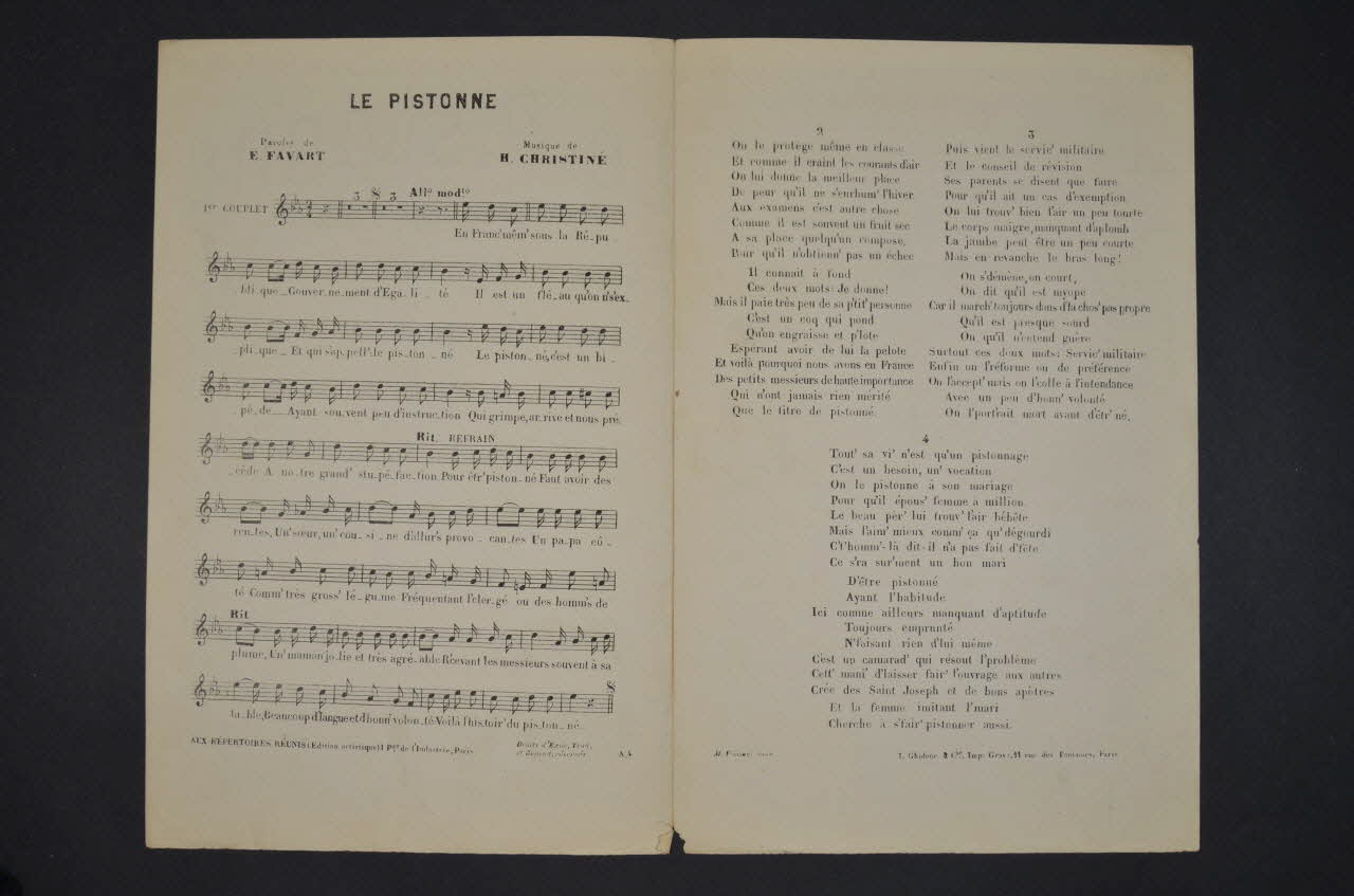 chanson, petit format, partition de musique, Le Pistonné