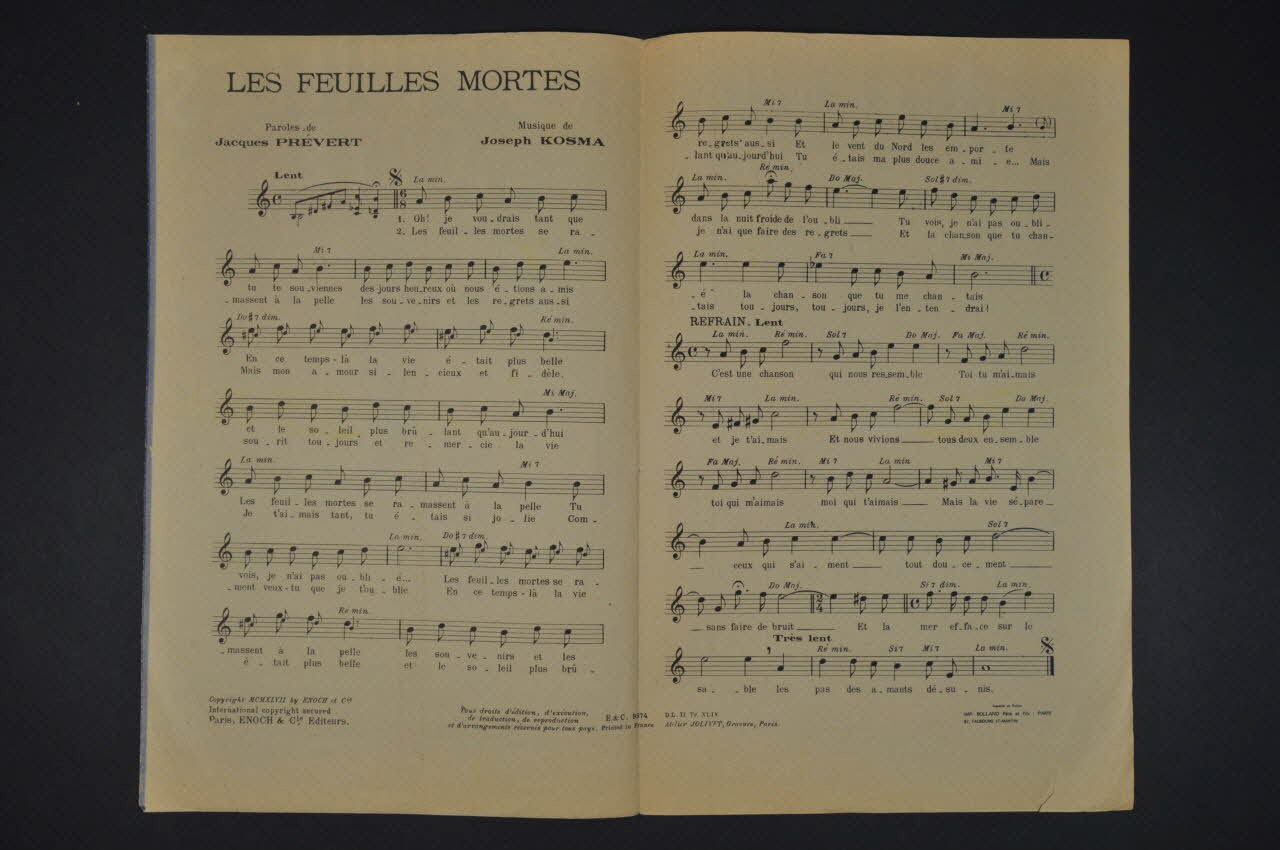 Des inscriptions renseignent le titre, les auteurs, les exécutants et l'éditeur. A l'intérieur, partition et paroles de la chanson. Au dos, liste d'autres partitions publiées par l'éditeur.Décor