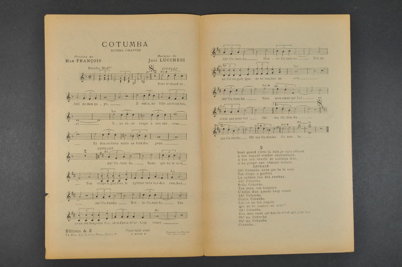 chanson, petit format, partition de musique, Cotumba