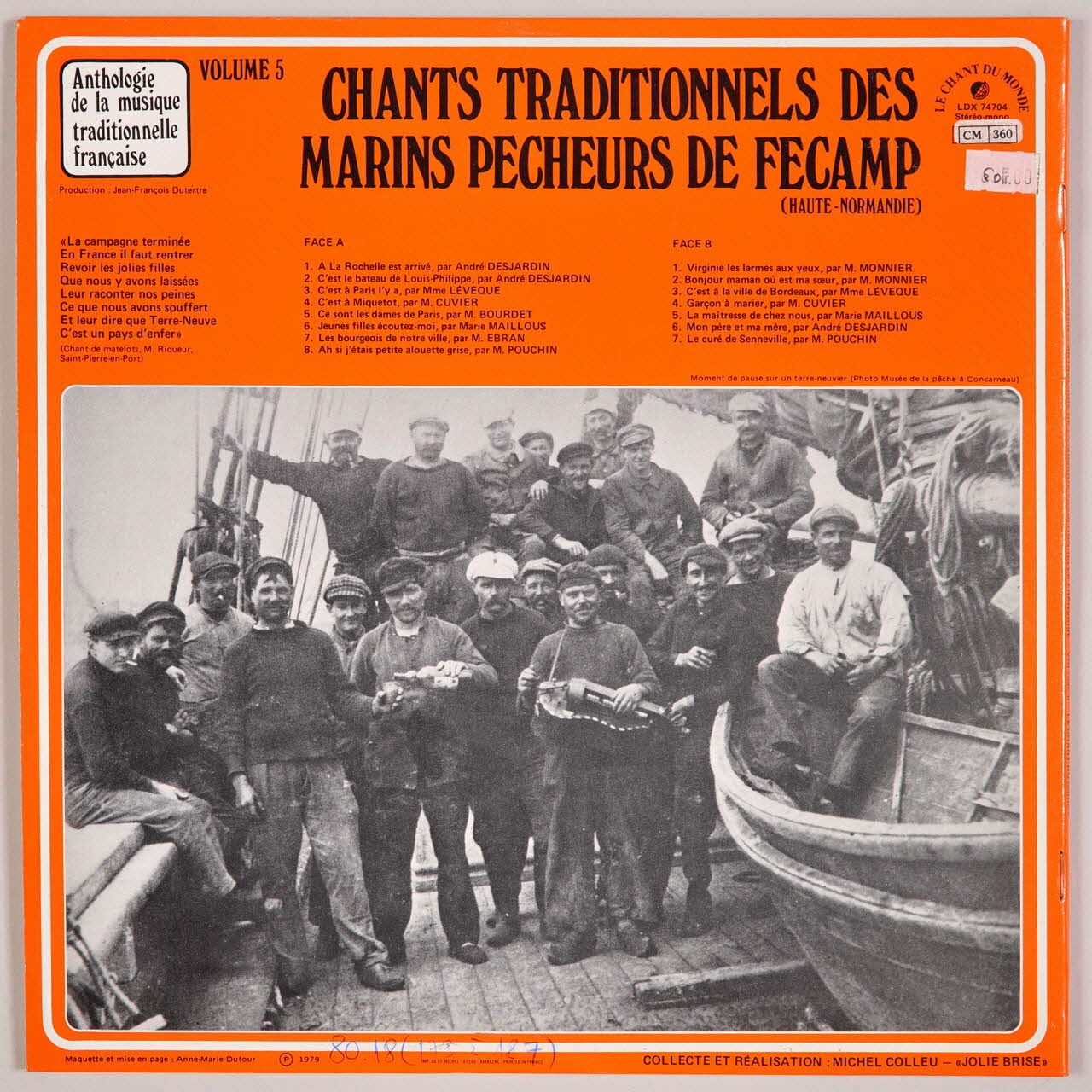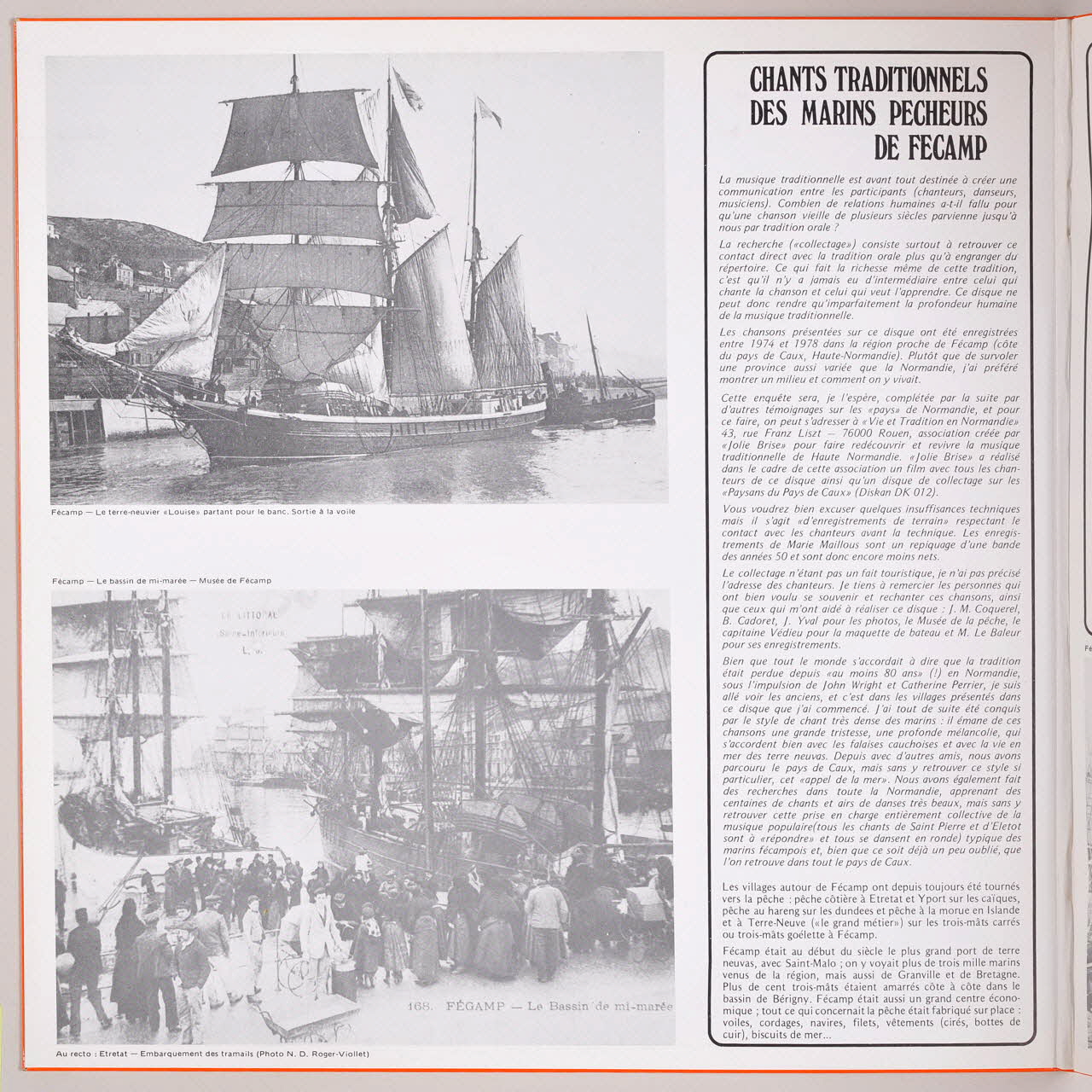 A l'intérieur de la pochette, les paroles des chansons et des textes explicatifs illustrés de photographies de marins pêcheurs.