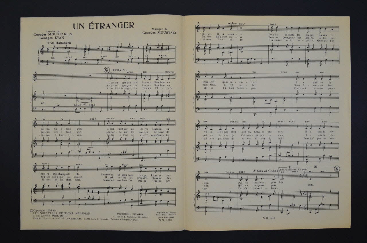 chanson, partition de musique, petit format, Un étranger