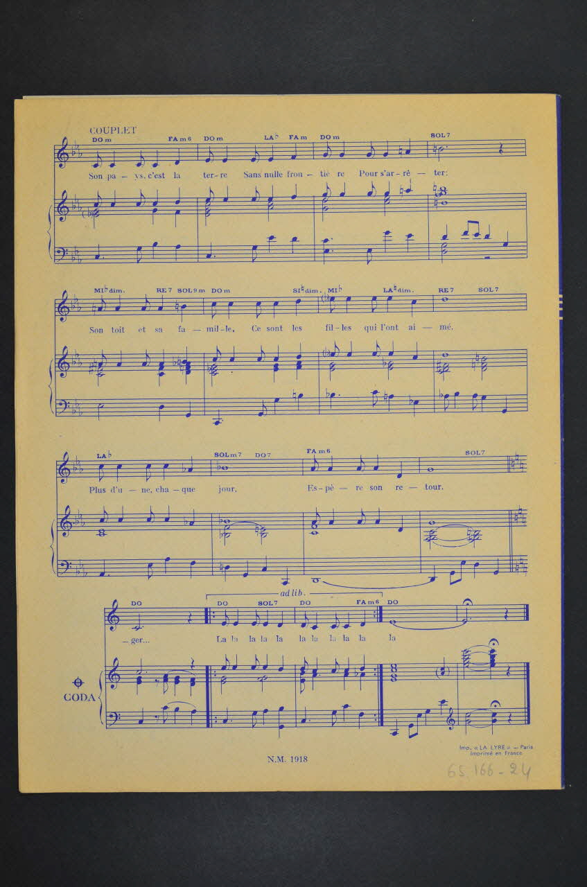 Des inscriptions renseignent le titre, les auteurs, les exécutants et l'éditeur. A l'intérieur et au dos, la partition et les paroles de la chanson.Décor