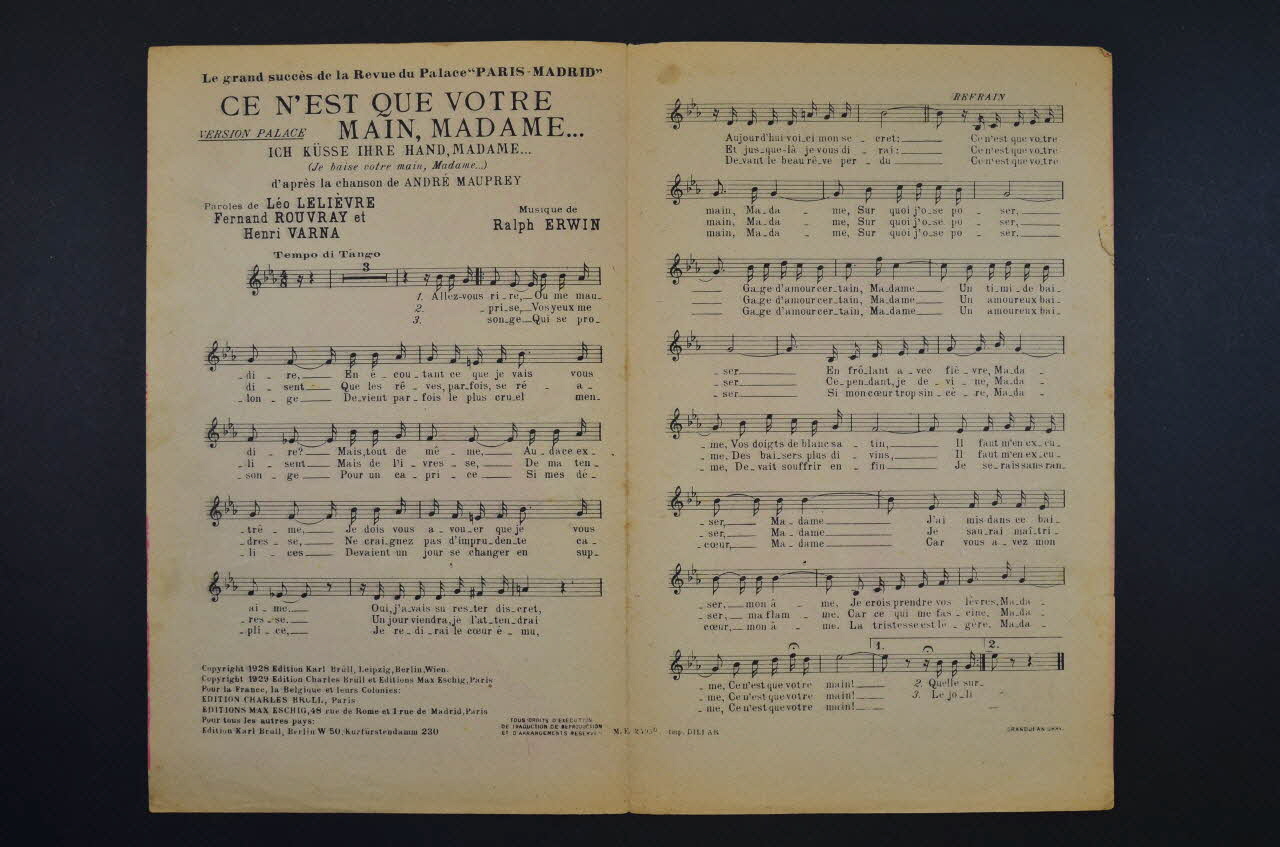 chanson, petit format, partition de musique, Ce n'est que votre main, Madame...