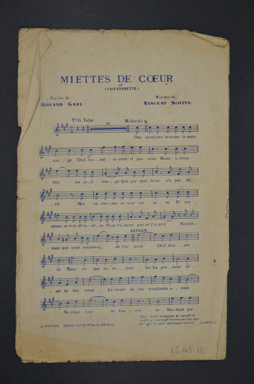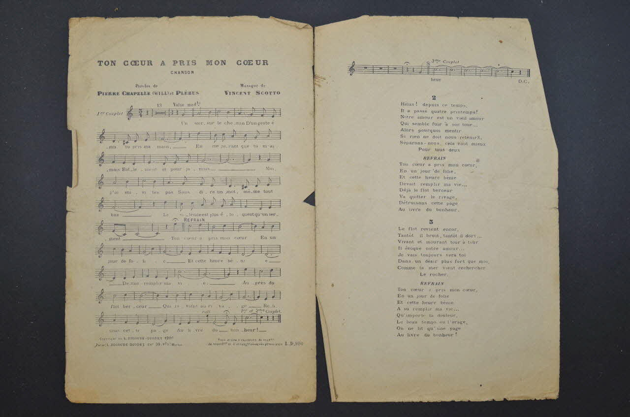 De : Date : 1907Ton coeur à pris mon coeur / Ton coeur a pris mon coeur / Miettes de coeur / 39 du Fbg st Martin